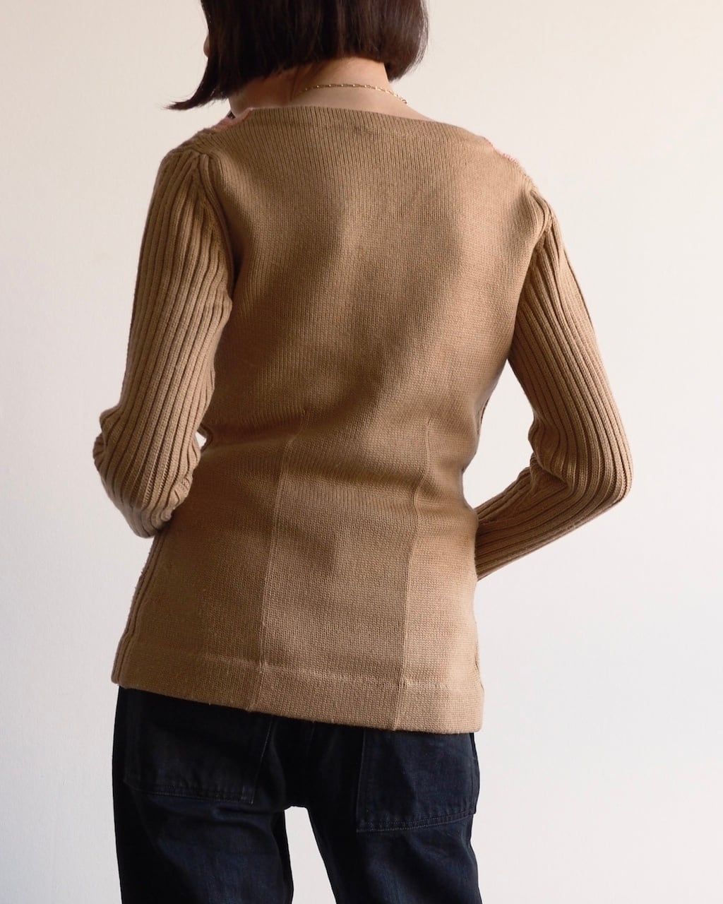 ほどよく体に沿いながらも、ニットならではの柔らかさがあり、窮屈さを感じさせません。
