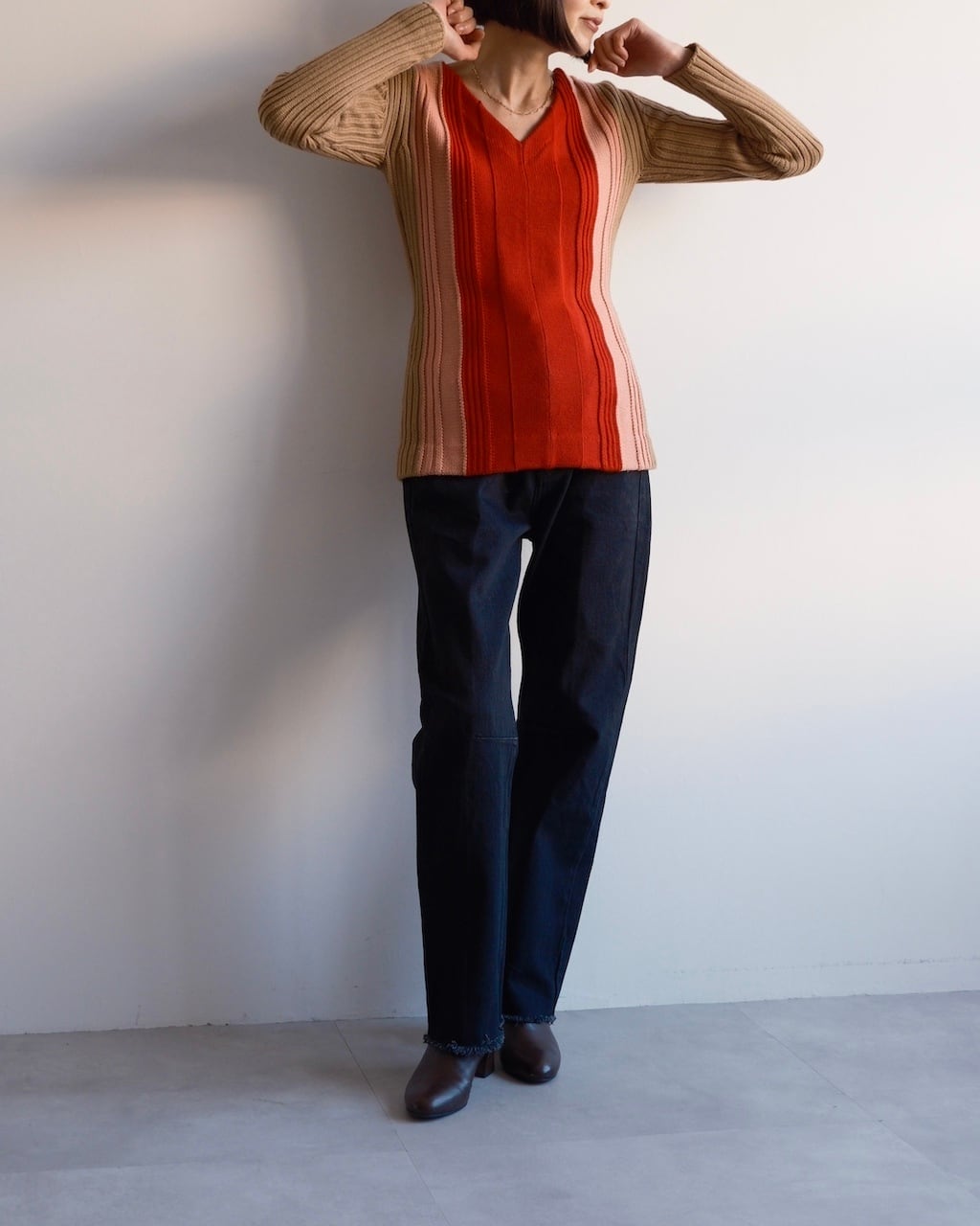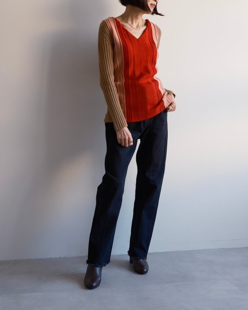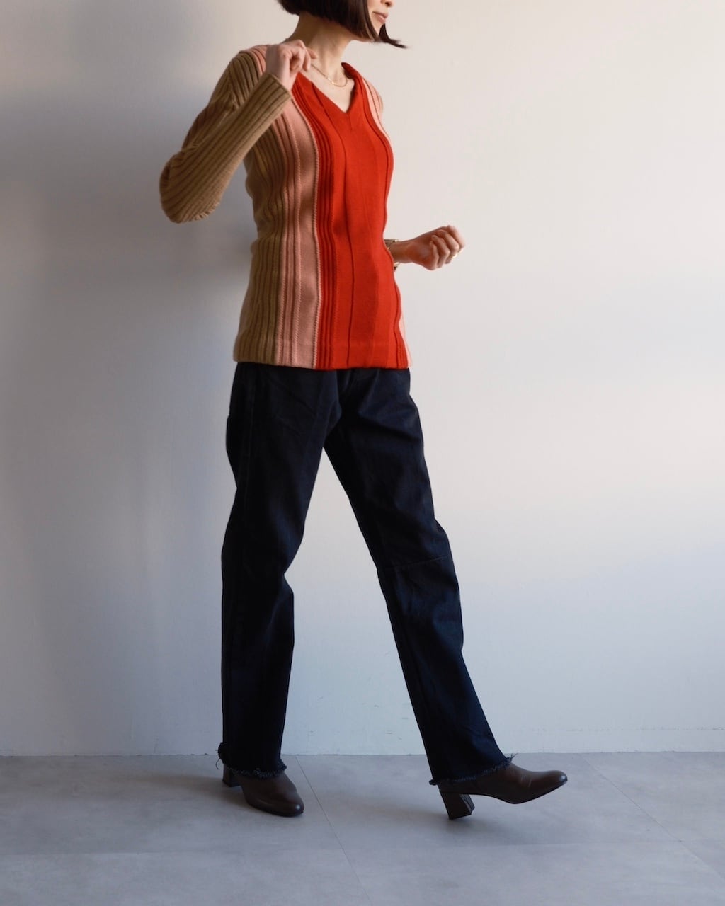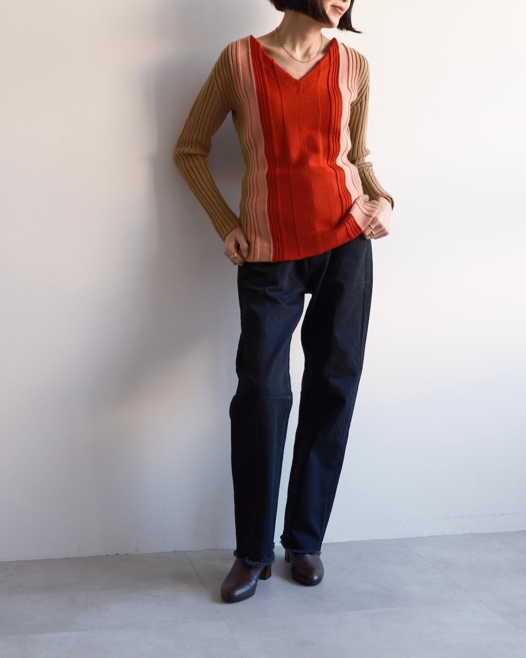 ストレートをベースに、膝下でわずかに切り替えを入れたレッグラインが特徴。