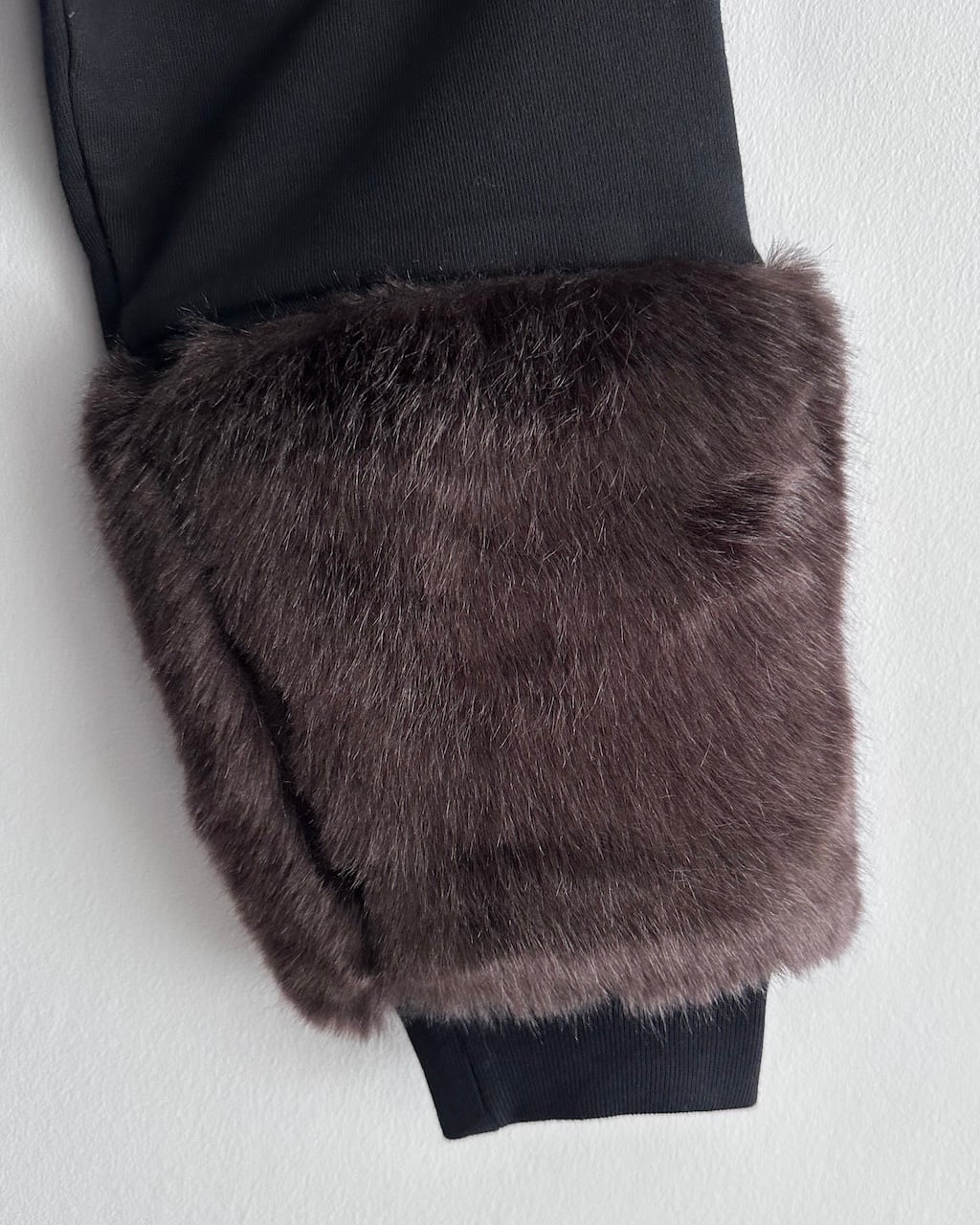 袖口はリブ仕様のため手首でしっかりと留まり、ボリュームのあるファー袖でもバランスよく着用可能。