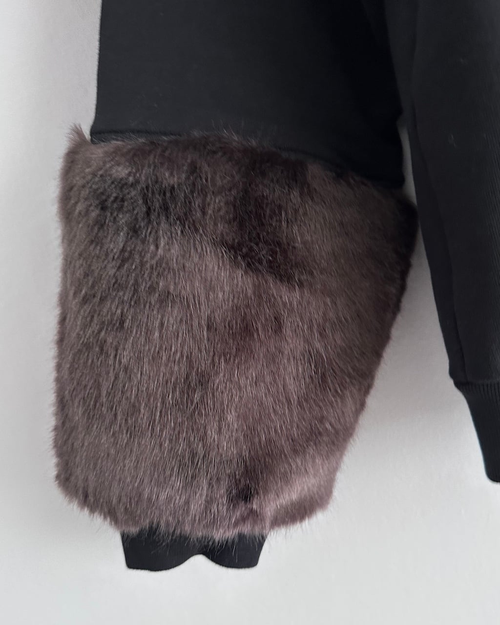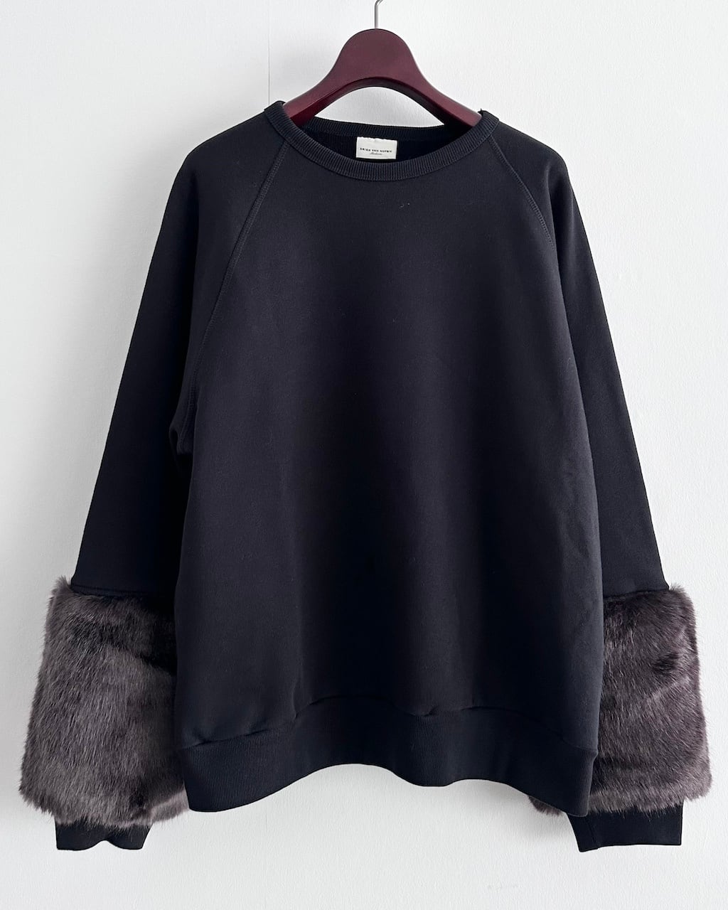 ベースはシンプルなスウェットでありながら、袖部分にボリュームのあるファーをあしらったDRIES VAN NOTENらしい素材使いが印象的な一着。