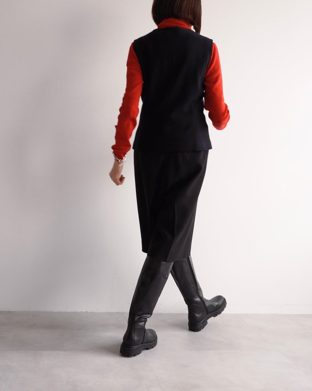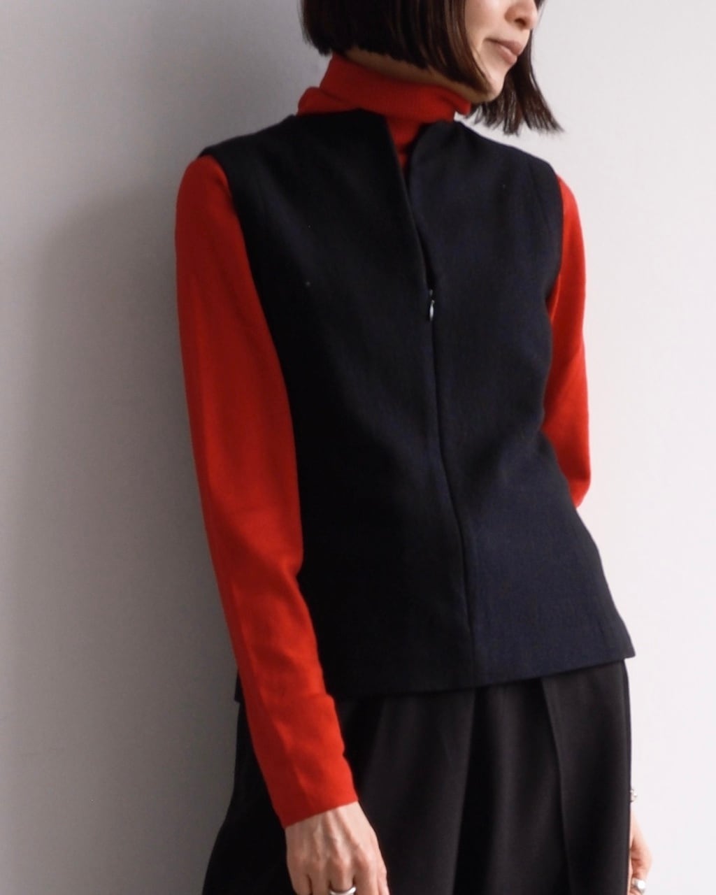 適度な厚みとハリがあり、ベストでありながら立体感のあるシルエットを保ちます。