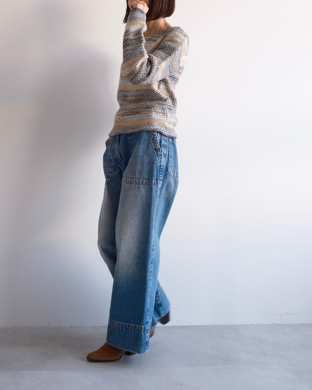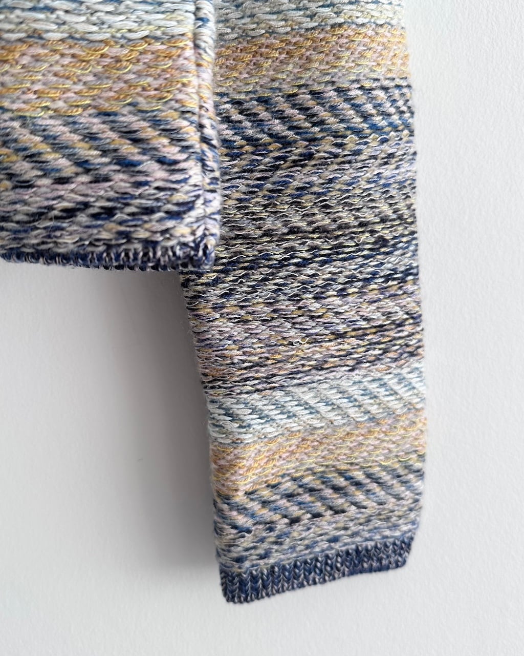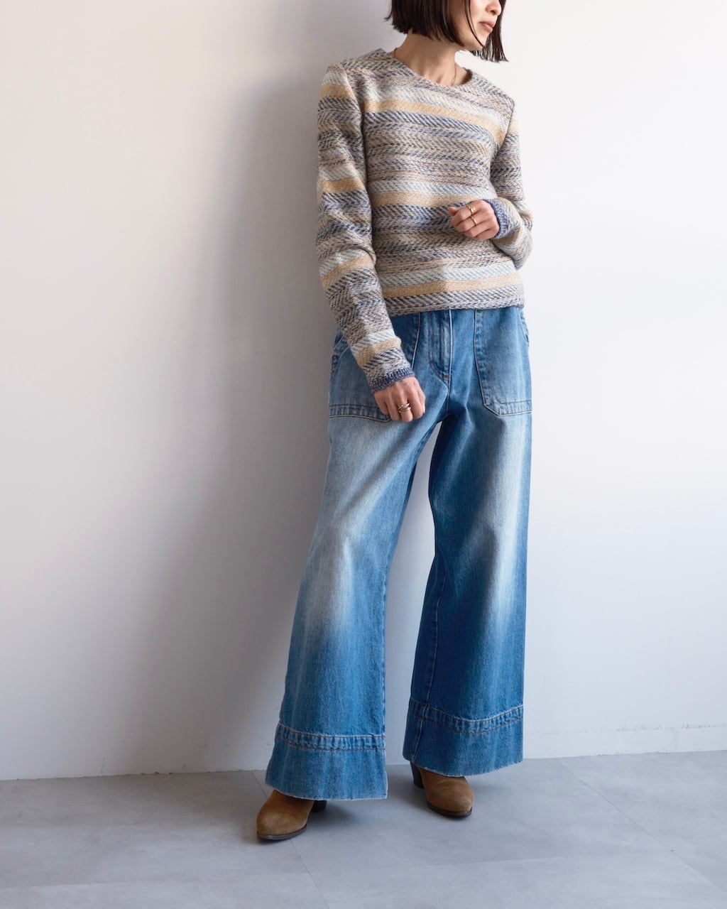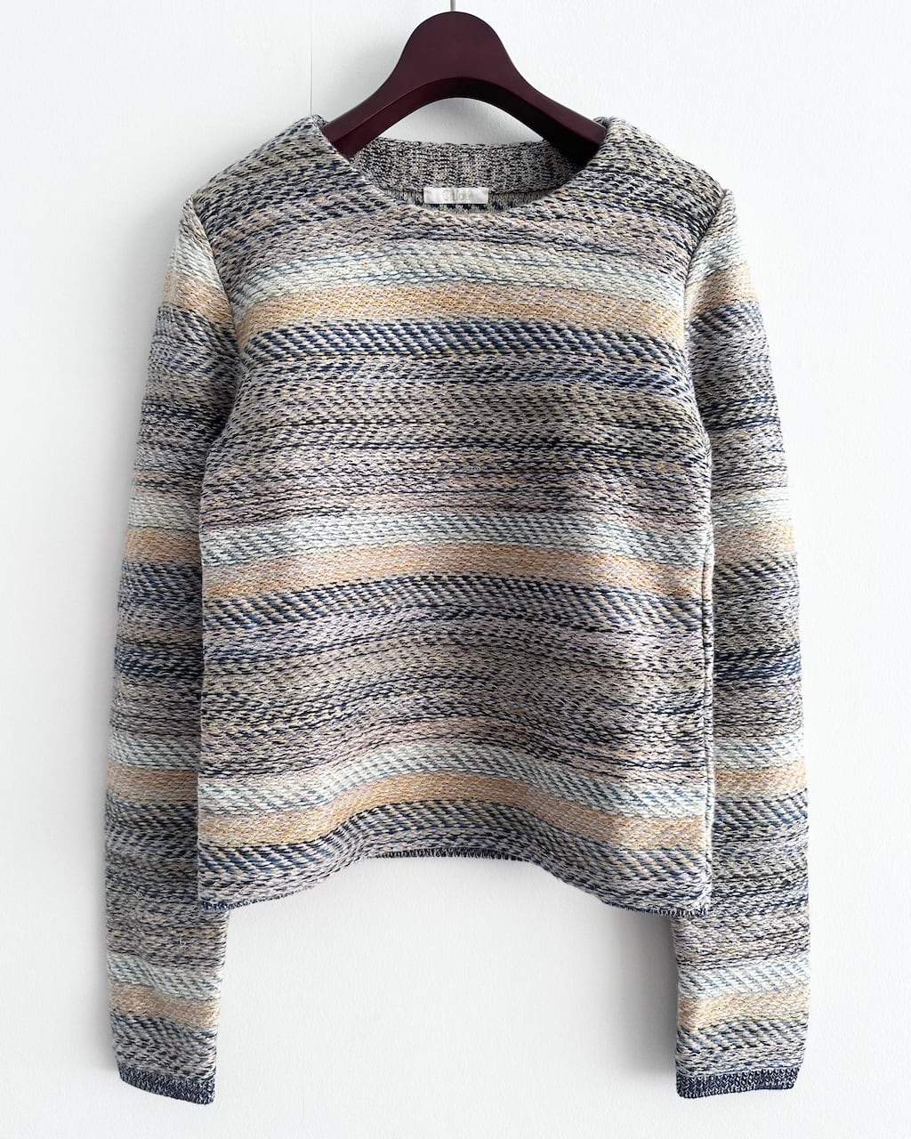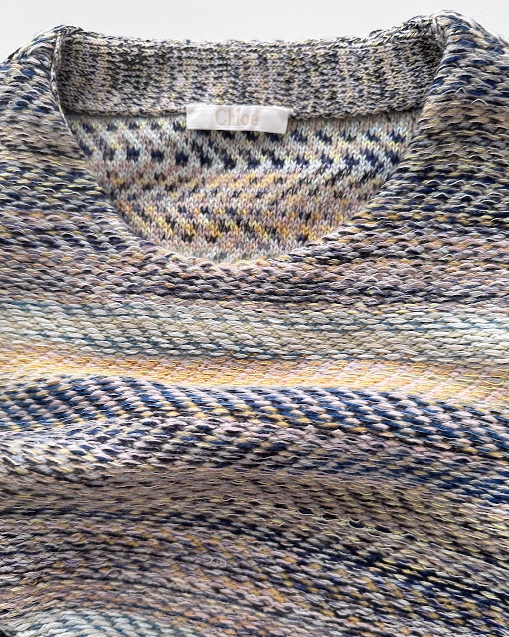 ブルー、イエロー、ラベンダー、ベージュなどの糸が繊細に織り込まれた奥行きのあるマルチカラーメランジが目をひくChloéのニットトップス。