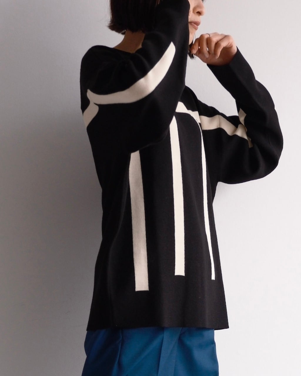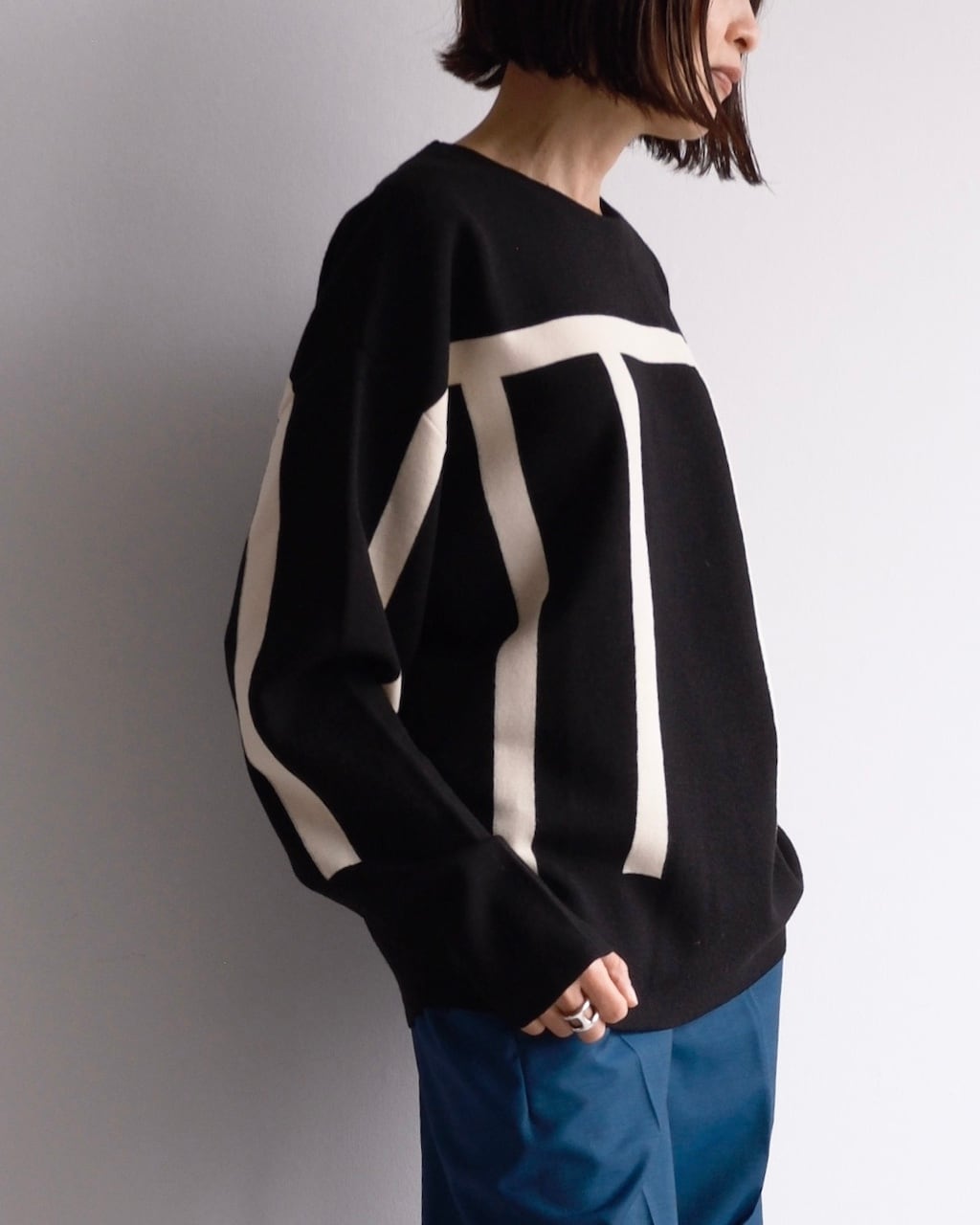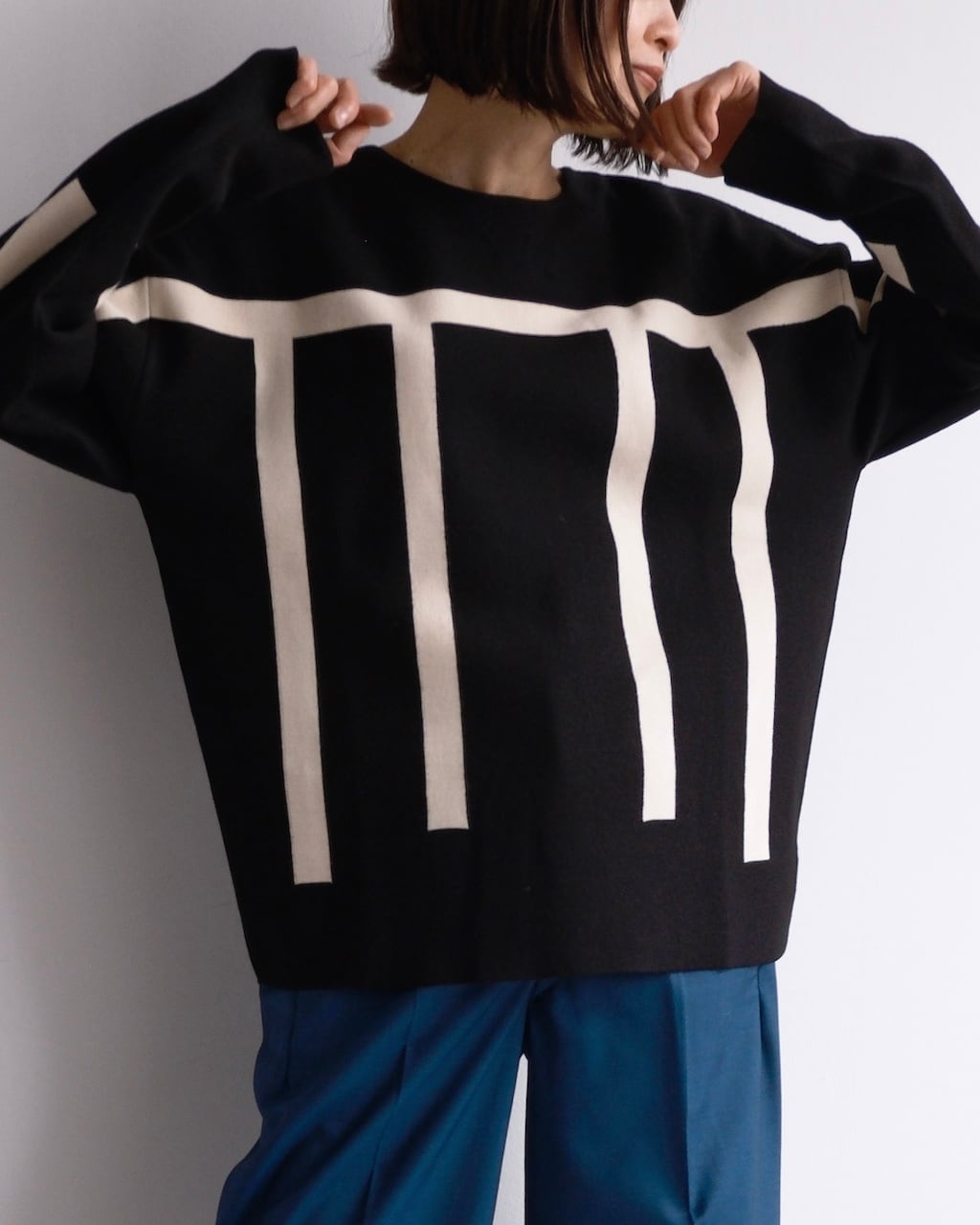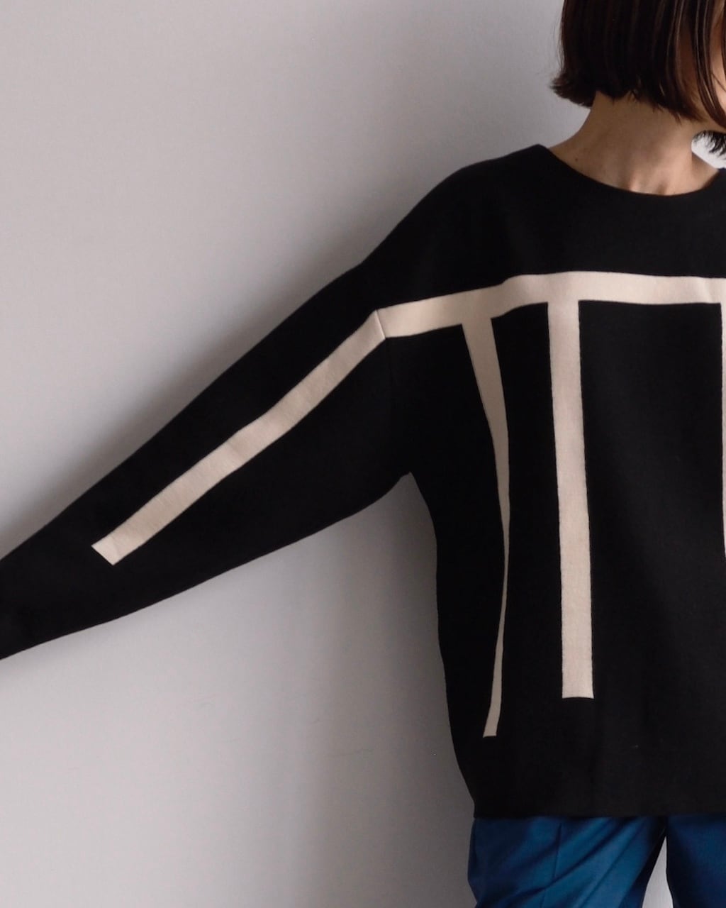 クリーンな配色とグラフィカルなラインが目を引き、1枚で決まるニットトップ。