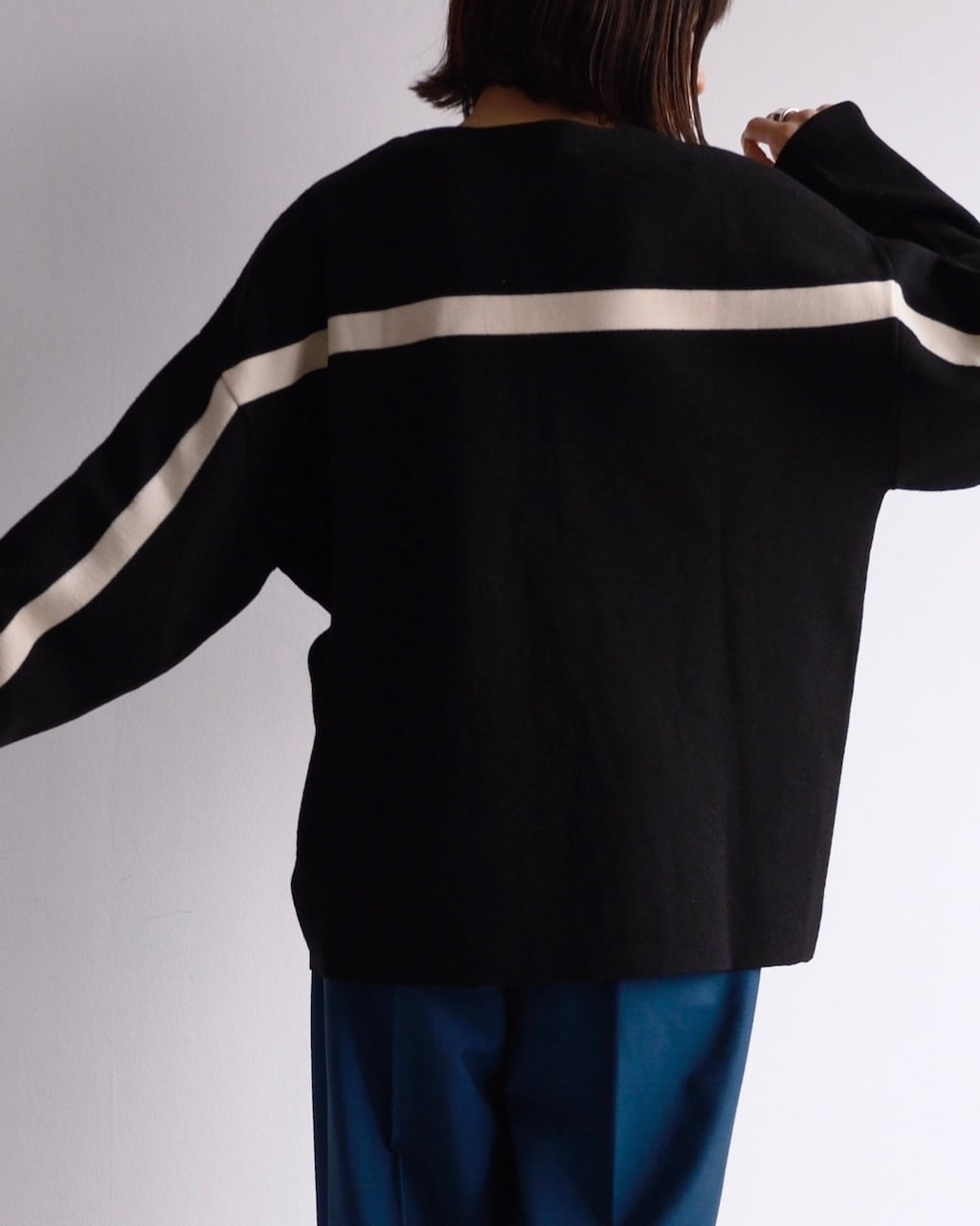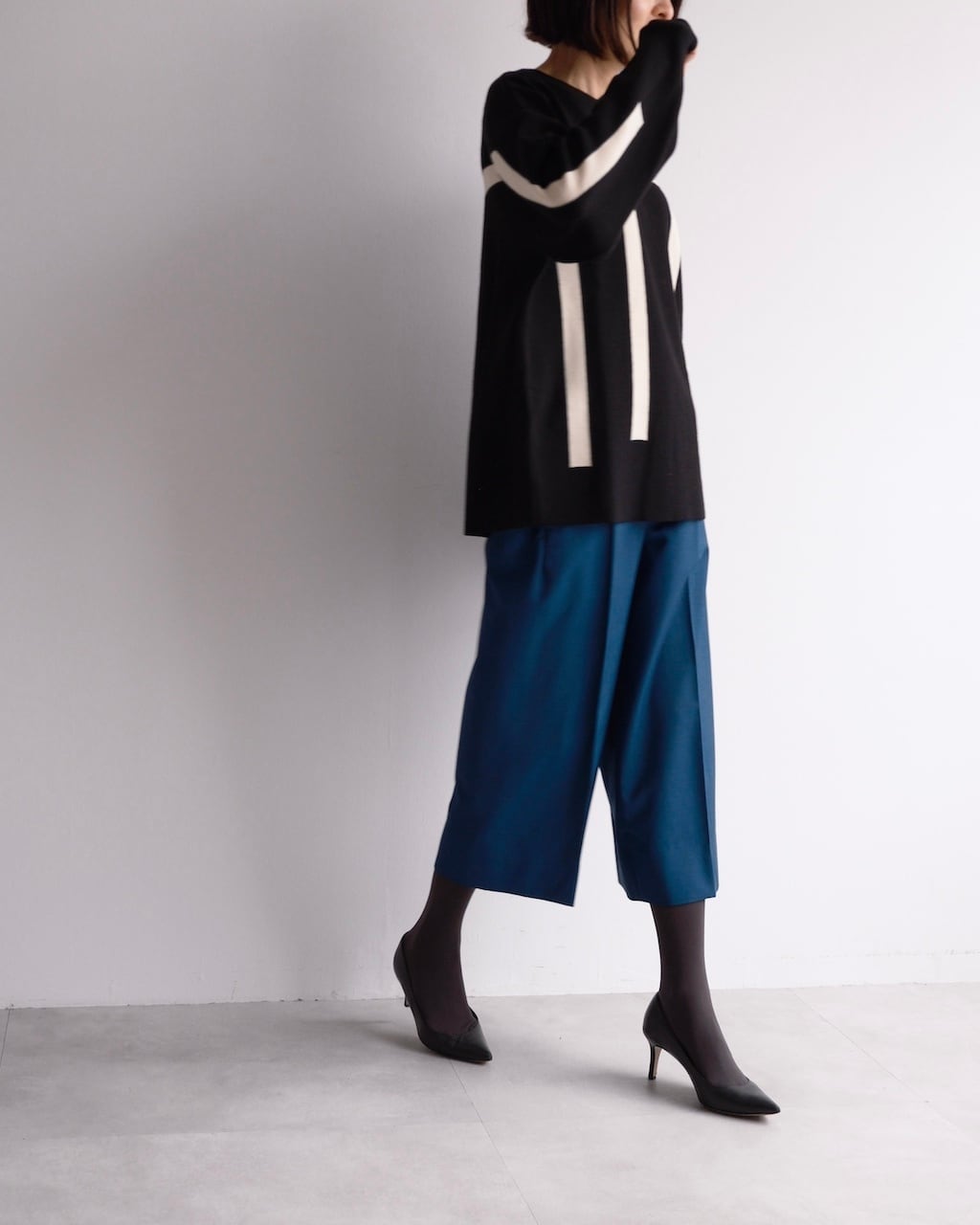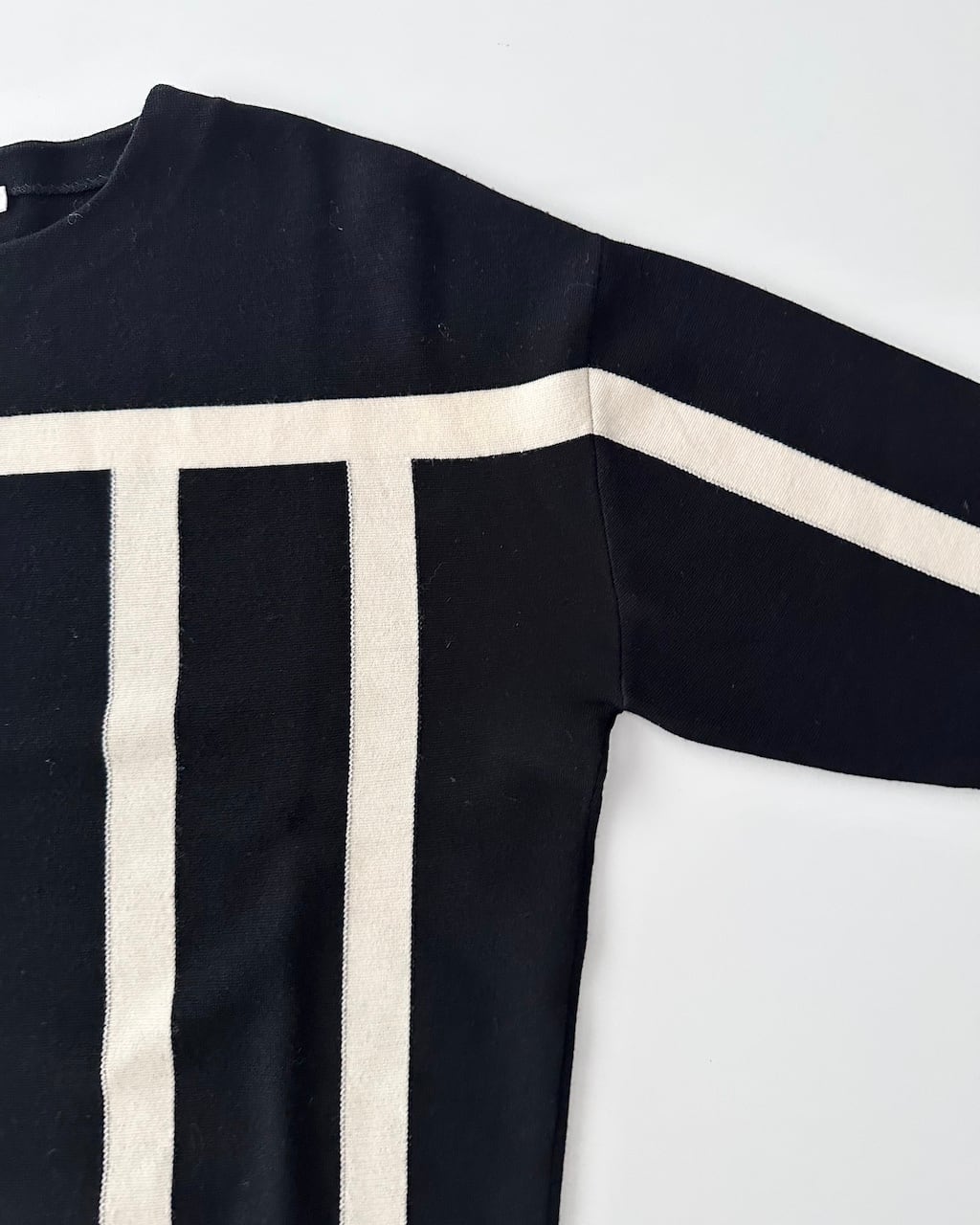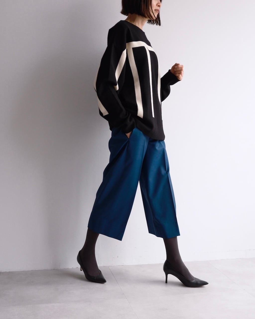 クリーンな配色とグラフィカルなラインが目を引き、1枚で決まるニットトップ。