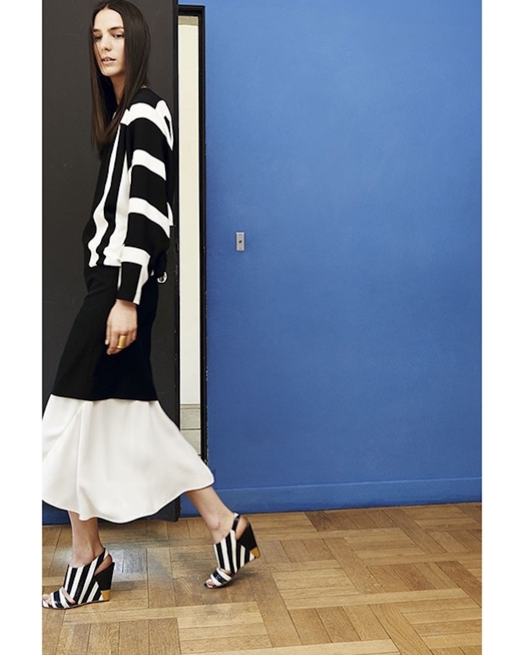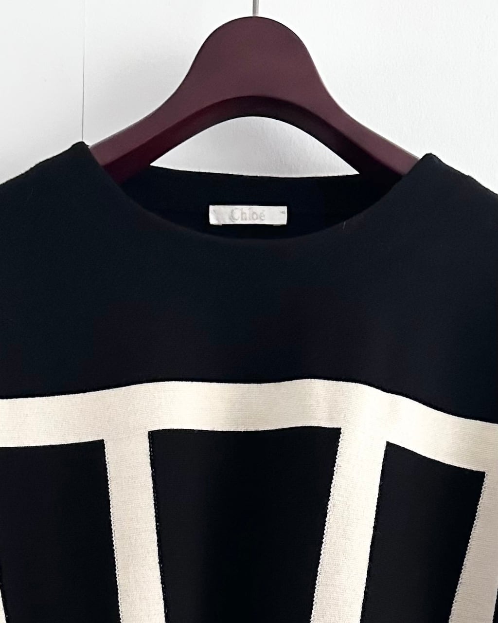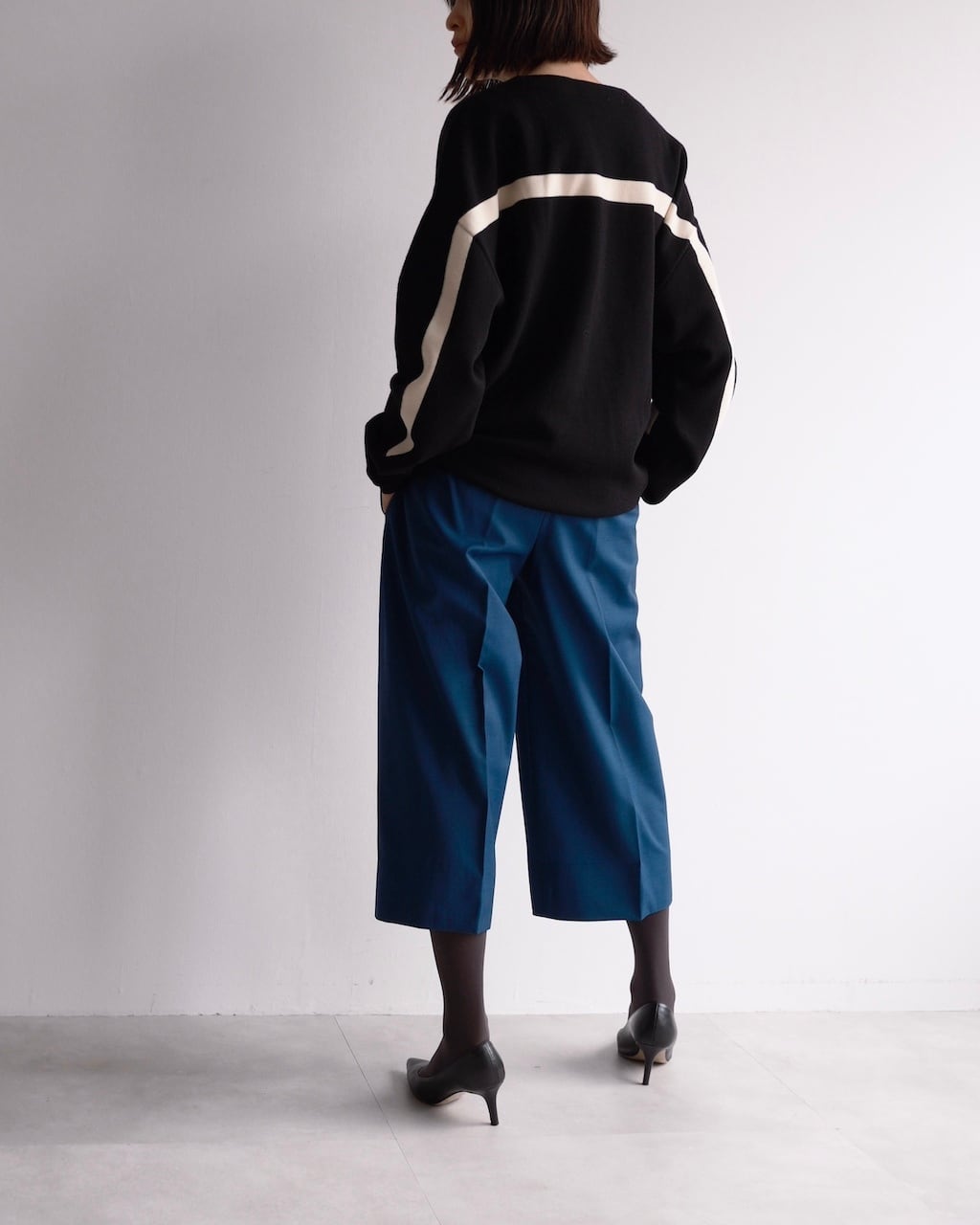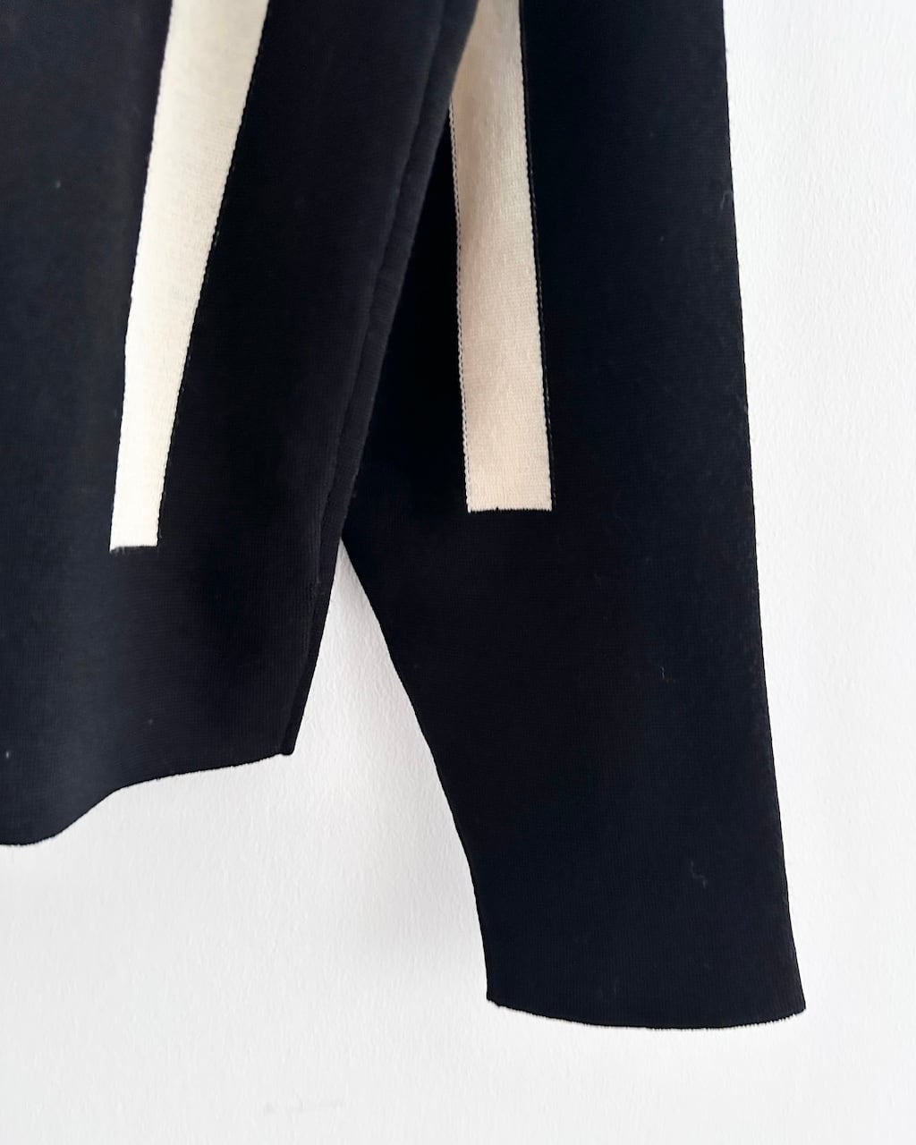 クリーンな配色とグラフィカルなラインが目を引き、1枚で決まるニットトップ。
