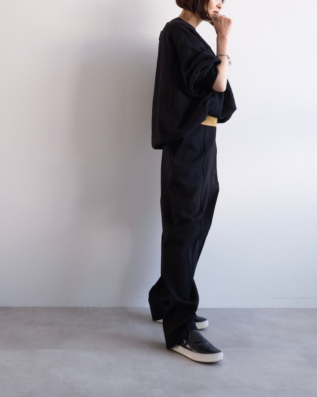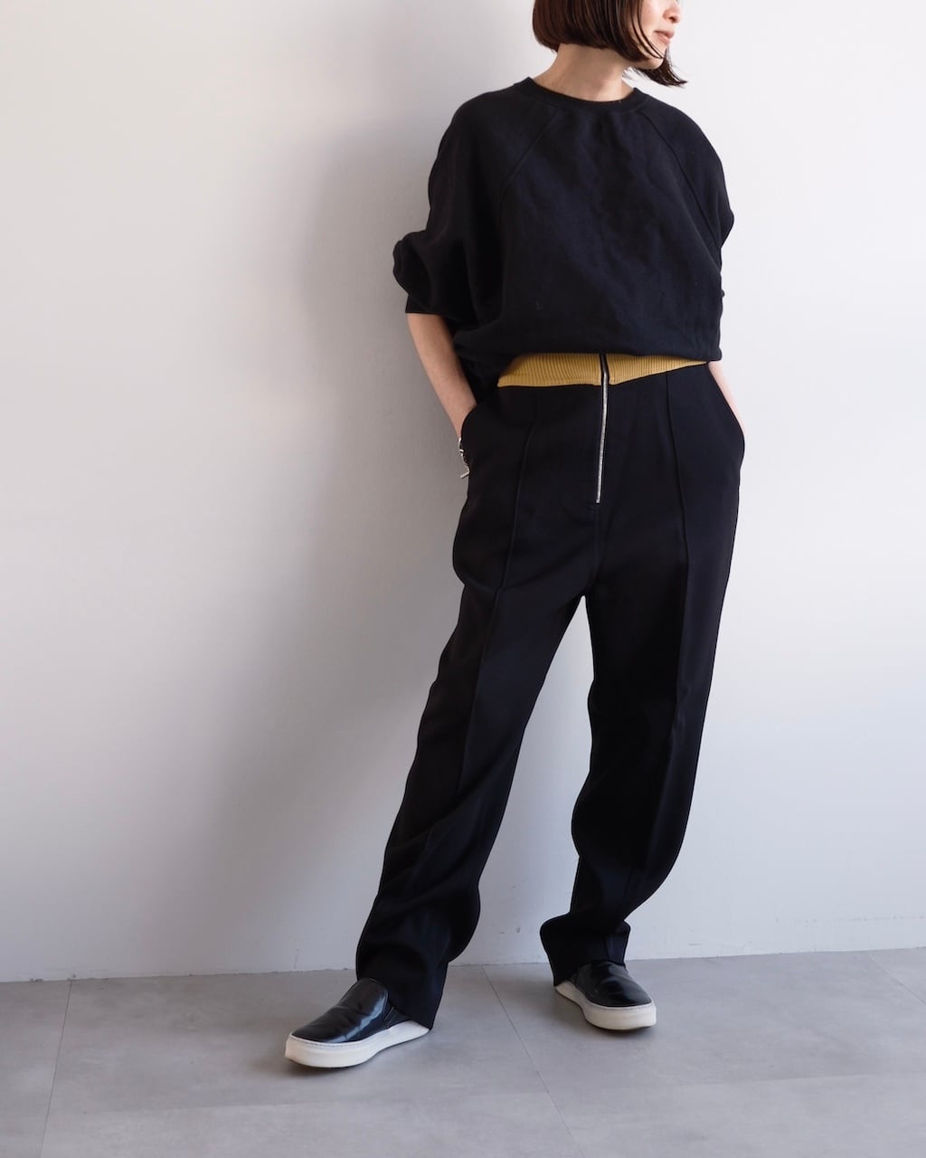 リラクシーな履き心地で日常に取り入れやすく、スタイリングに洗練された印象を与えてくれるトラウザーです。