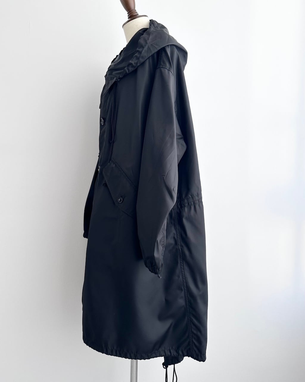 ミニマルな佇まいの中に、独特なフォルムを備えたY’sらしいナイロンロングコートです。