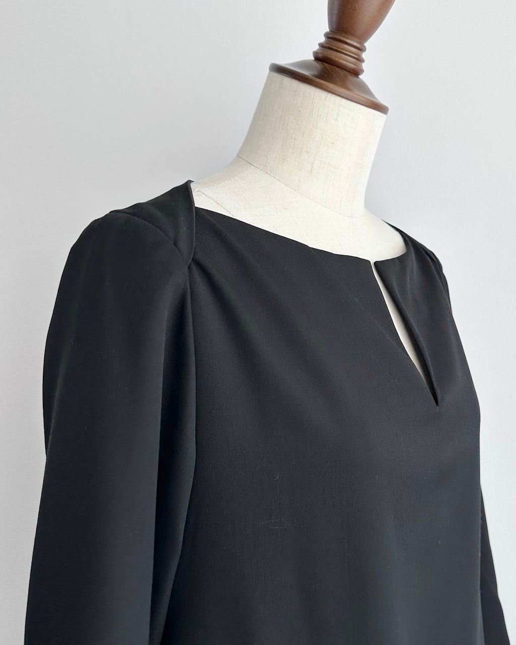 横に開いたネックラインに、中央へすっと入るキーホールのカッティング。