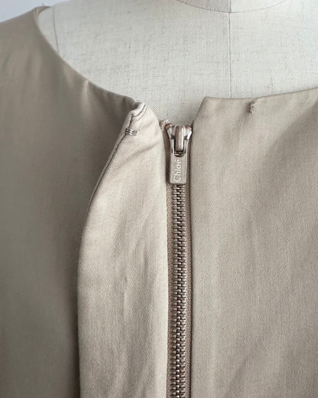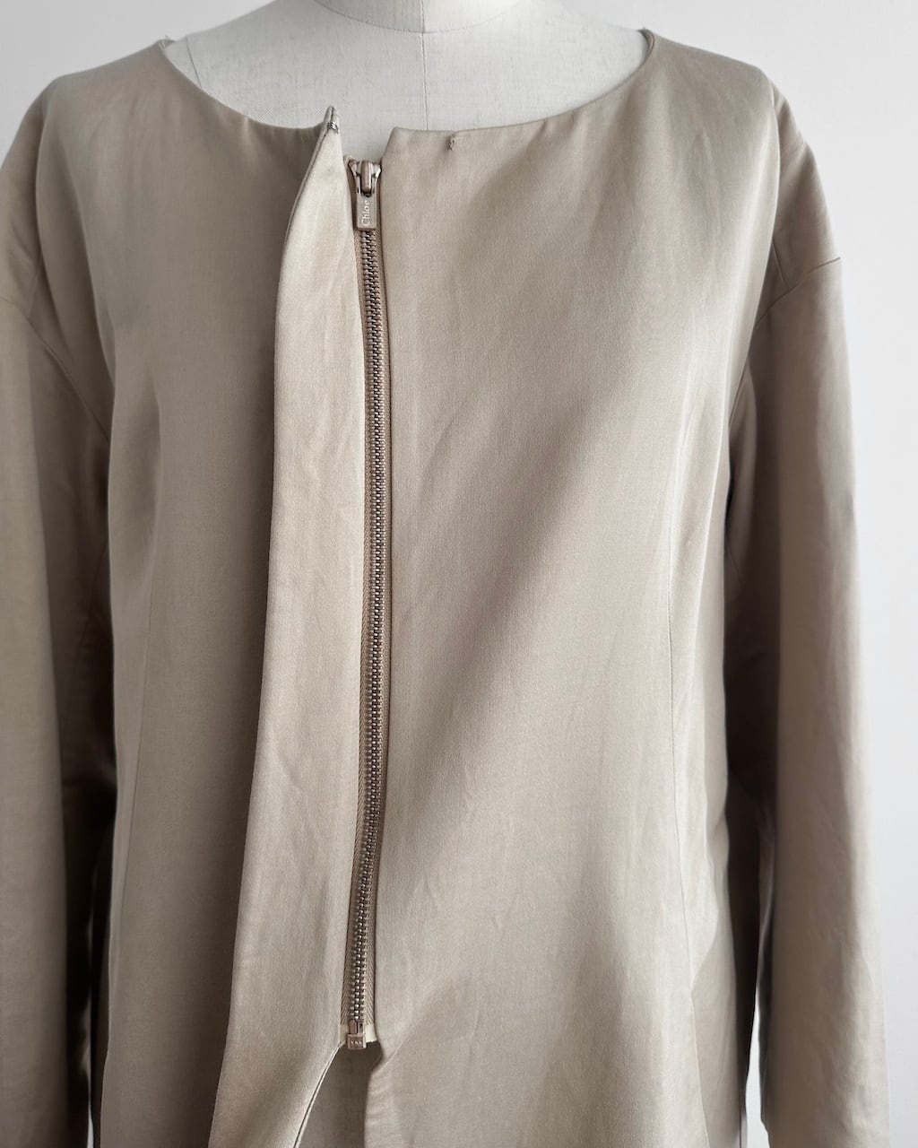 ベージュの上品な色味と軽さが魅力のChloéのシルクコート。