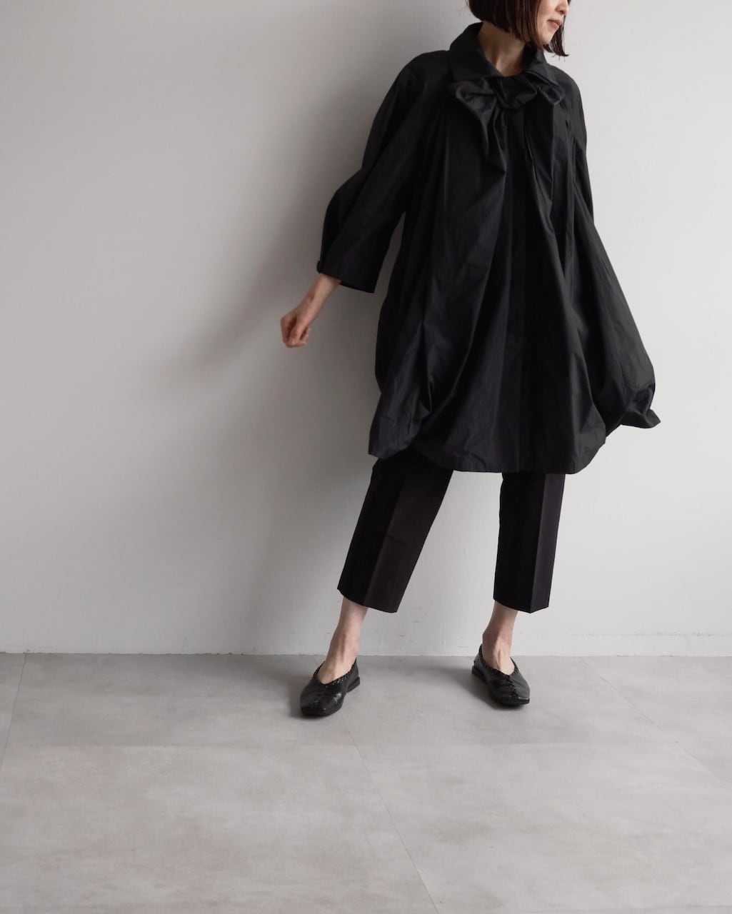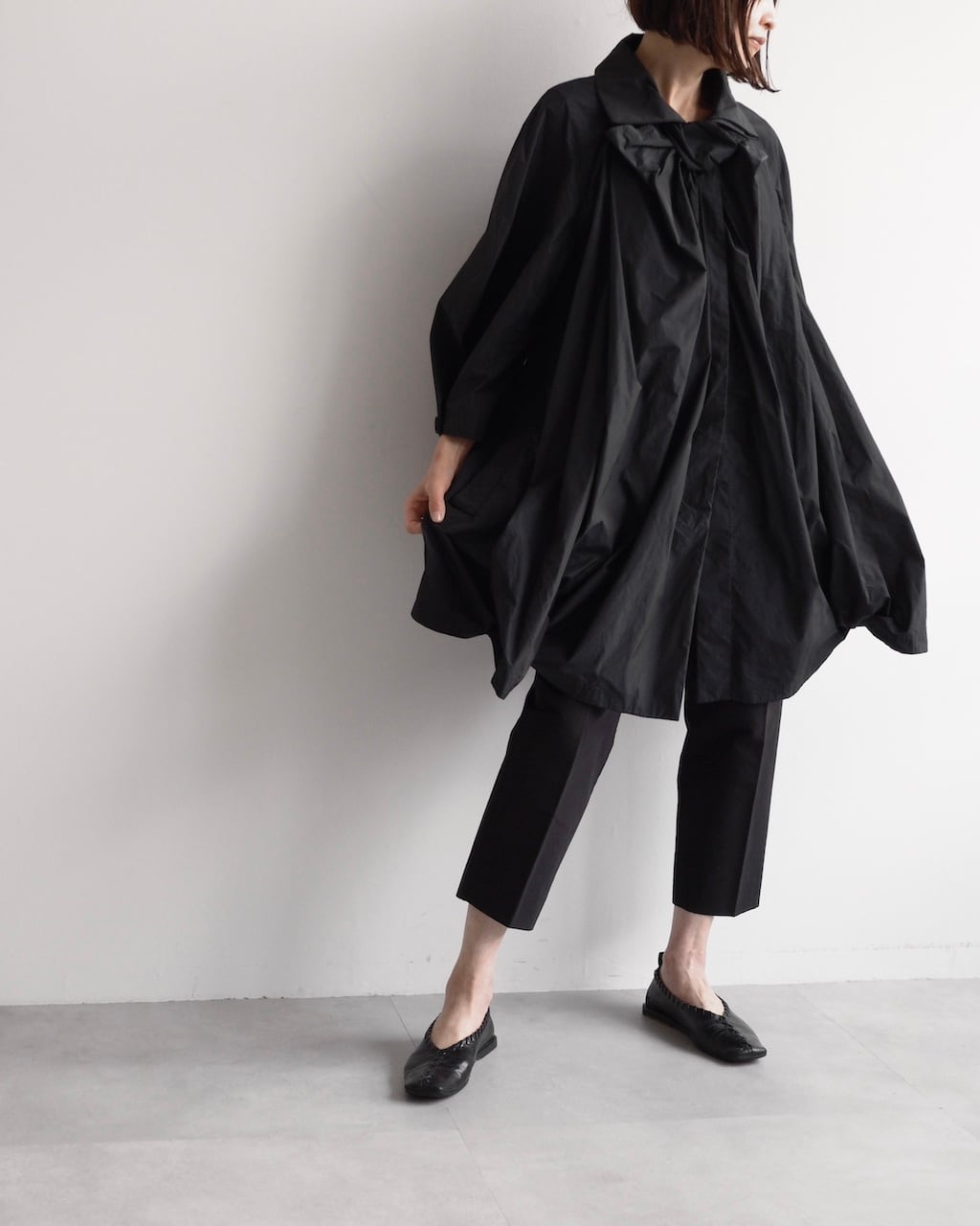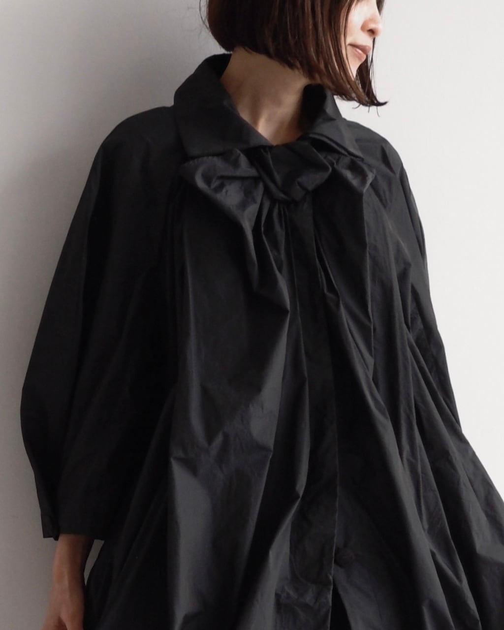軽やかな素材と立体的なフォルムが魅力の一着。