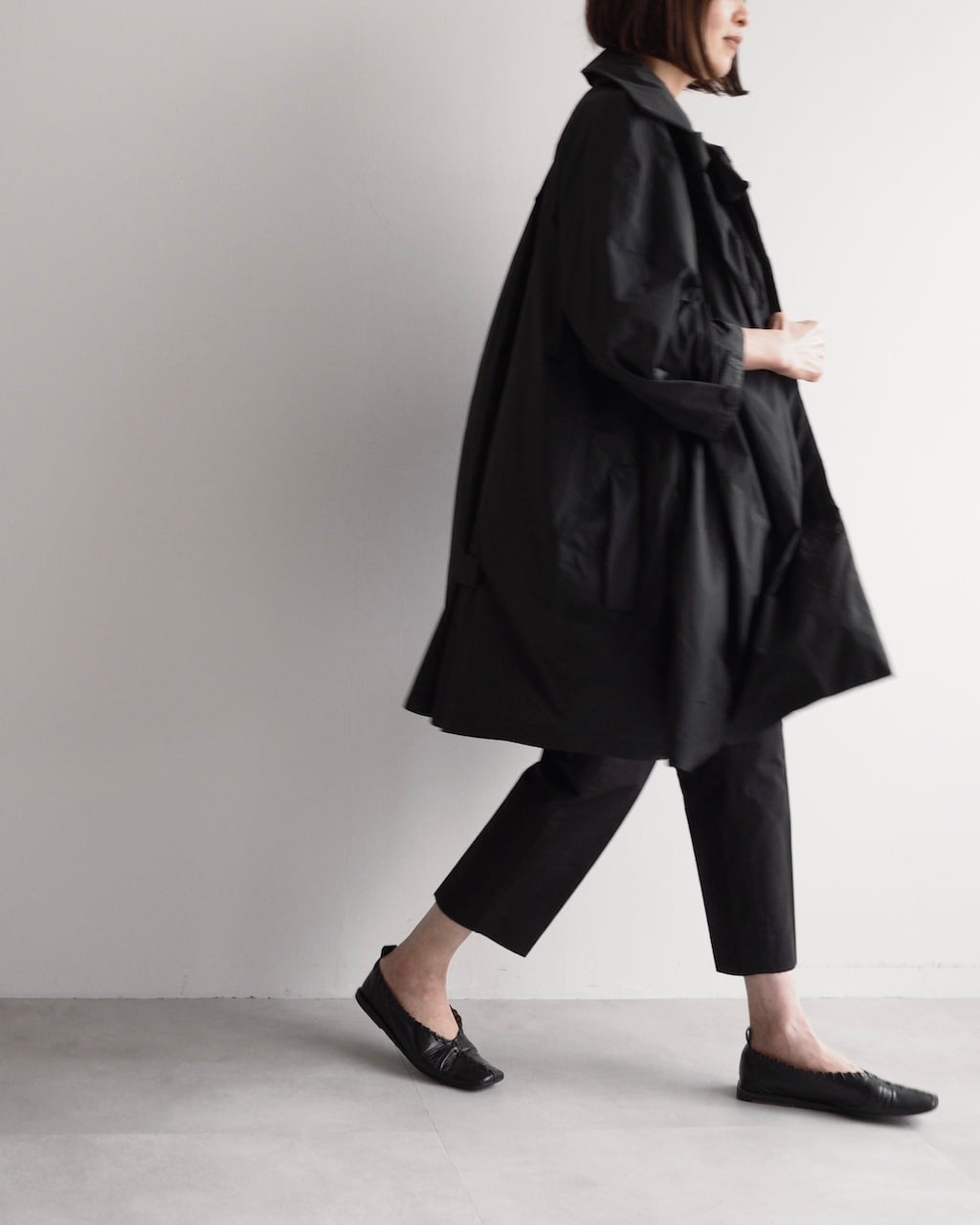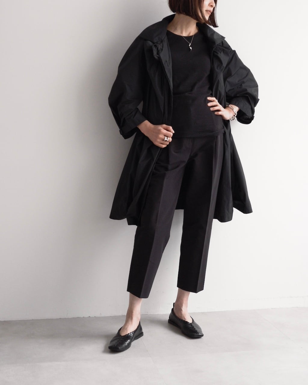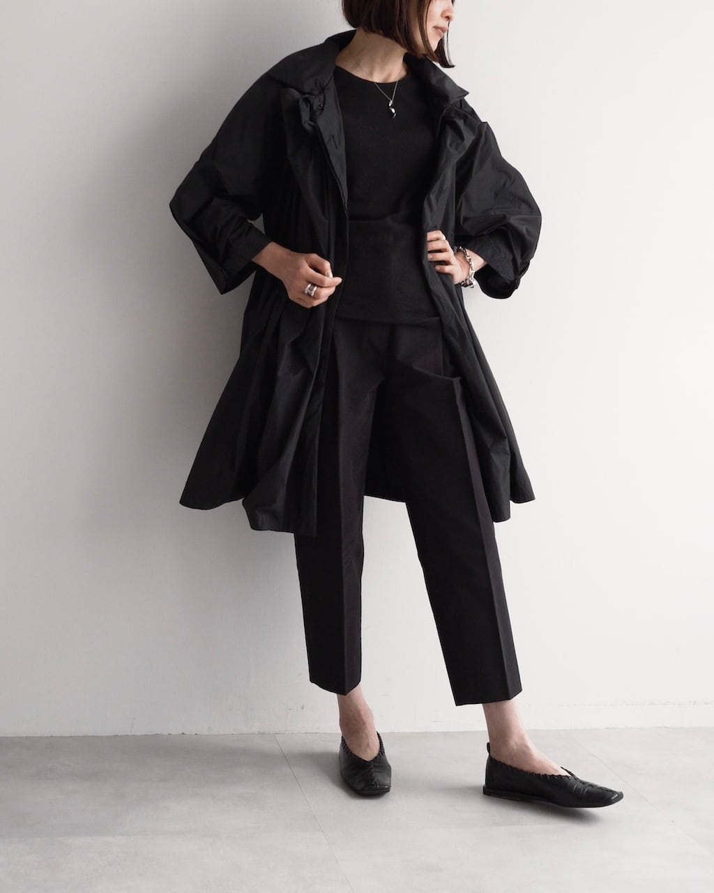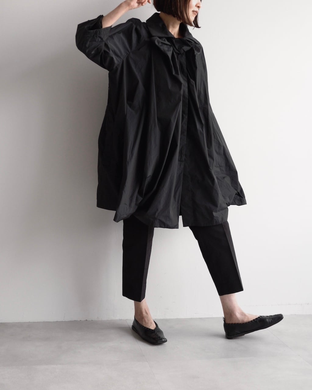 軽やかな素材と立体的なフォルムが魅力の一着。