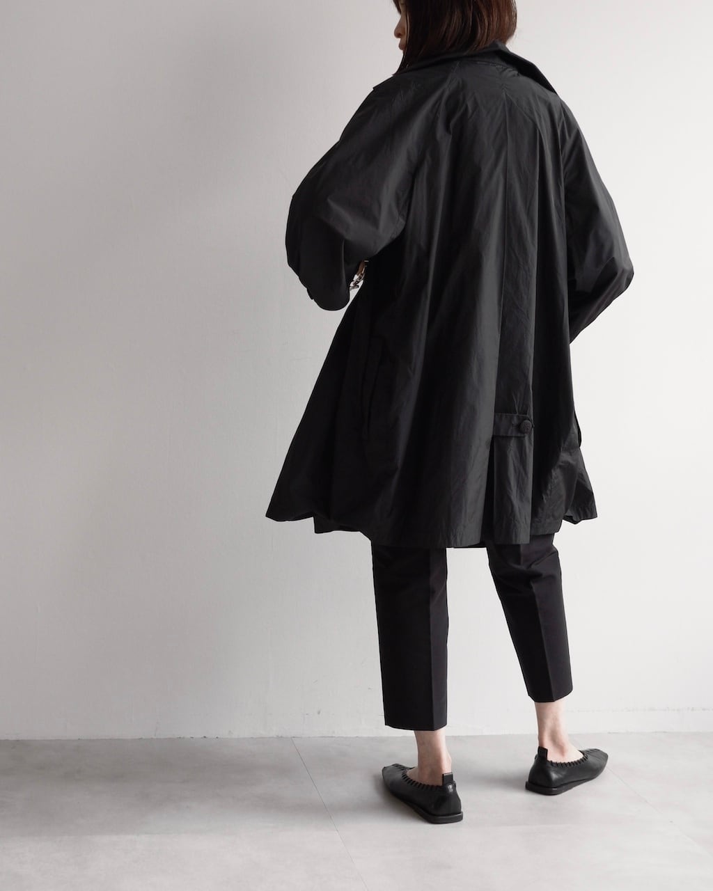 軽やかなポリエステルのタフタ素材で仕立てられ、空気を含むようにやわらかく広がるフォルムが印象的です。