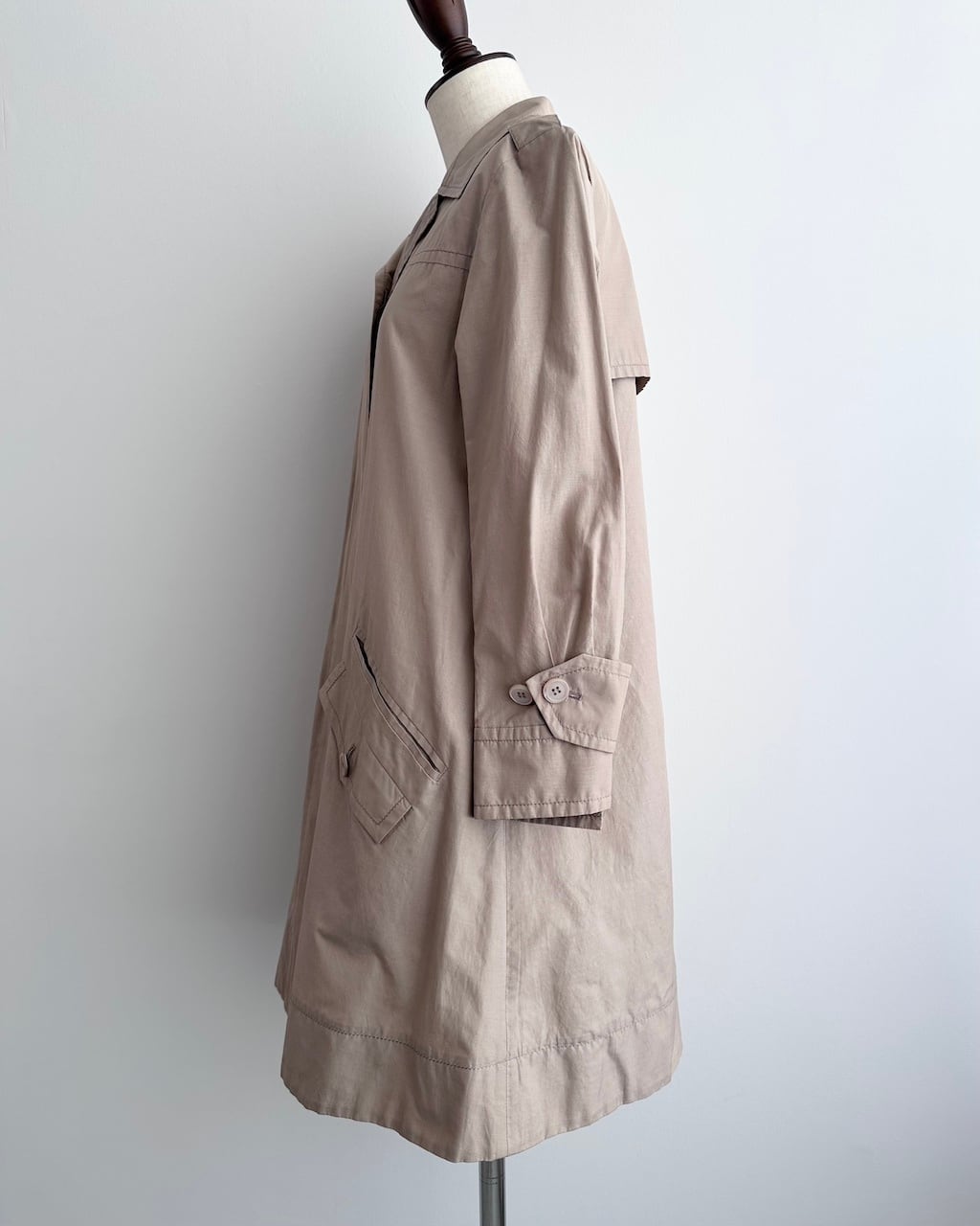 miu miuのやわらかなベージュカラーの軽やかなポリエステルコットン素材で仕立てられたコート。