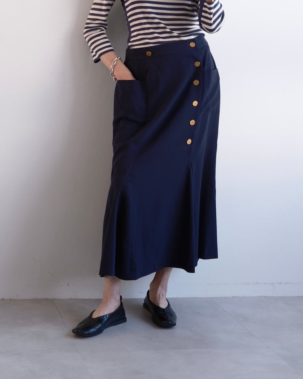 2000年代前後、カール・ラガーフェルド期のCHANELによるクラシックなエッセンスが素敵なマリン風スカート。
