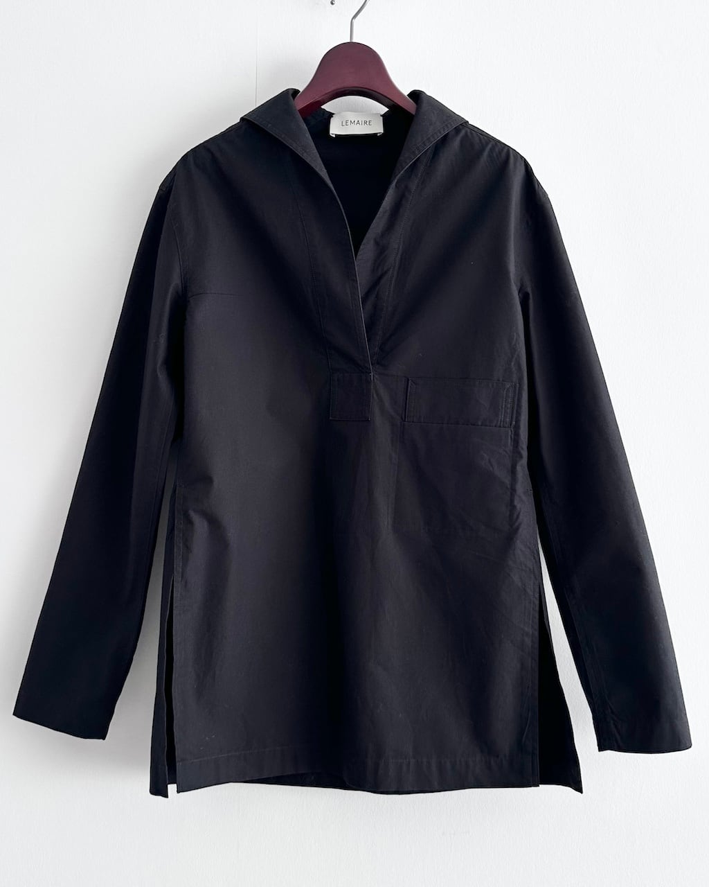 深く開いたスキッパーネックが印象的な、LEMAIREのプルオーバーシャツ。