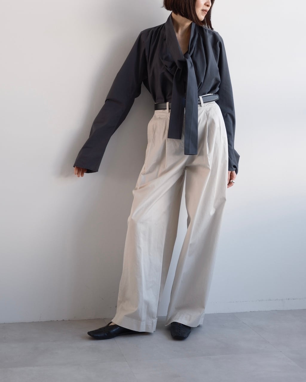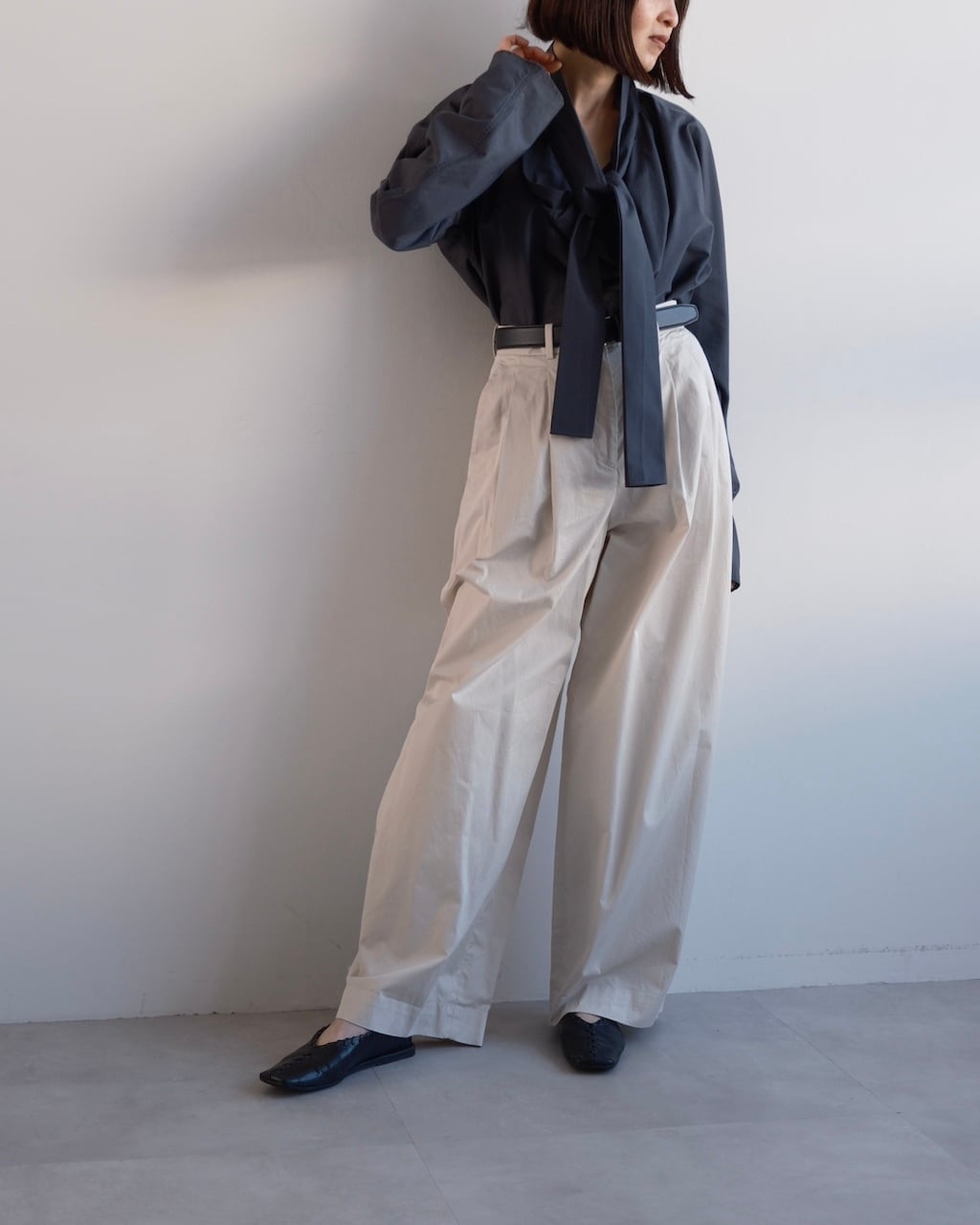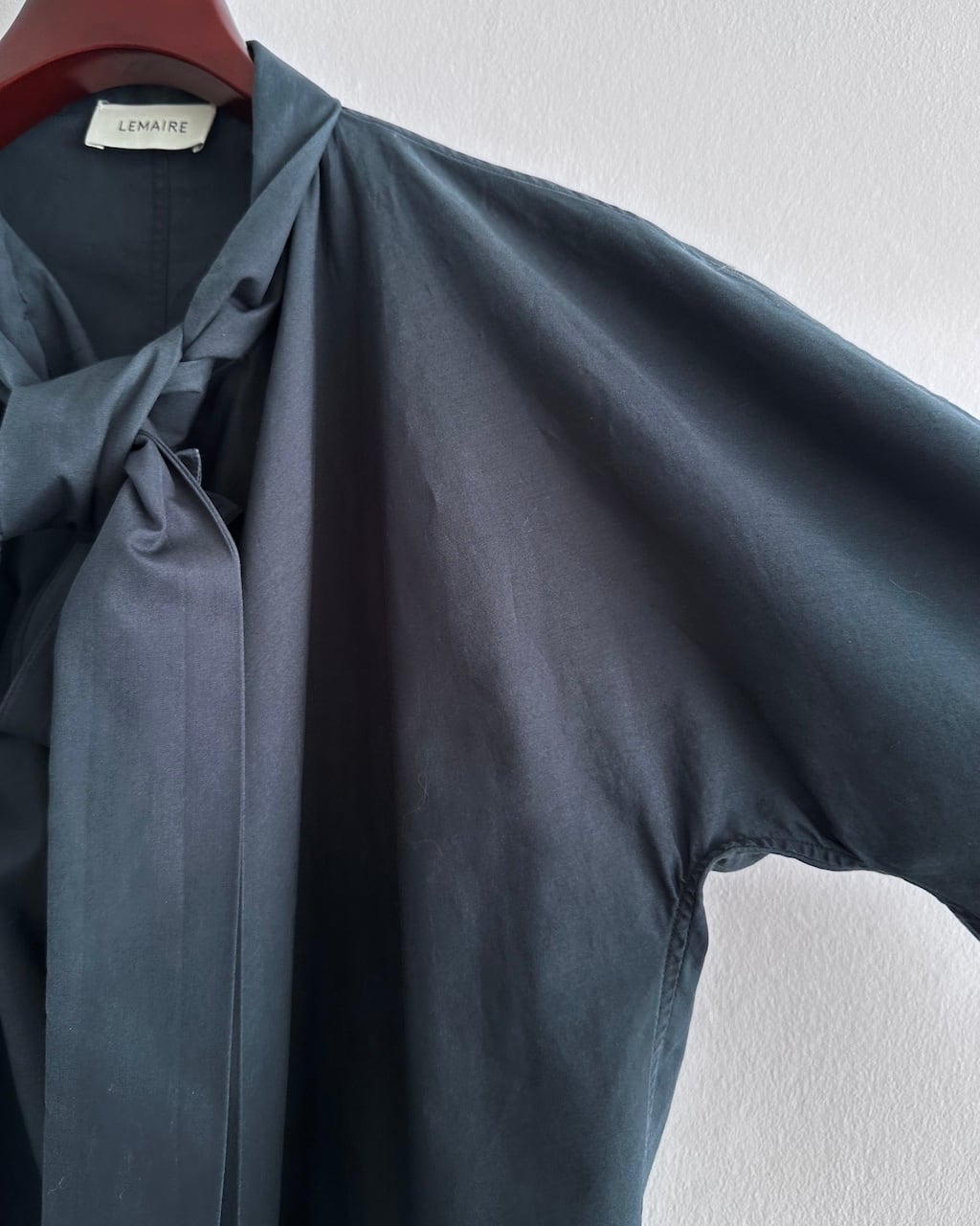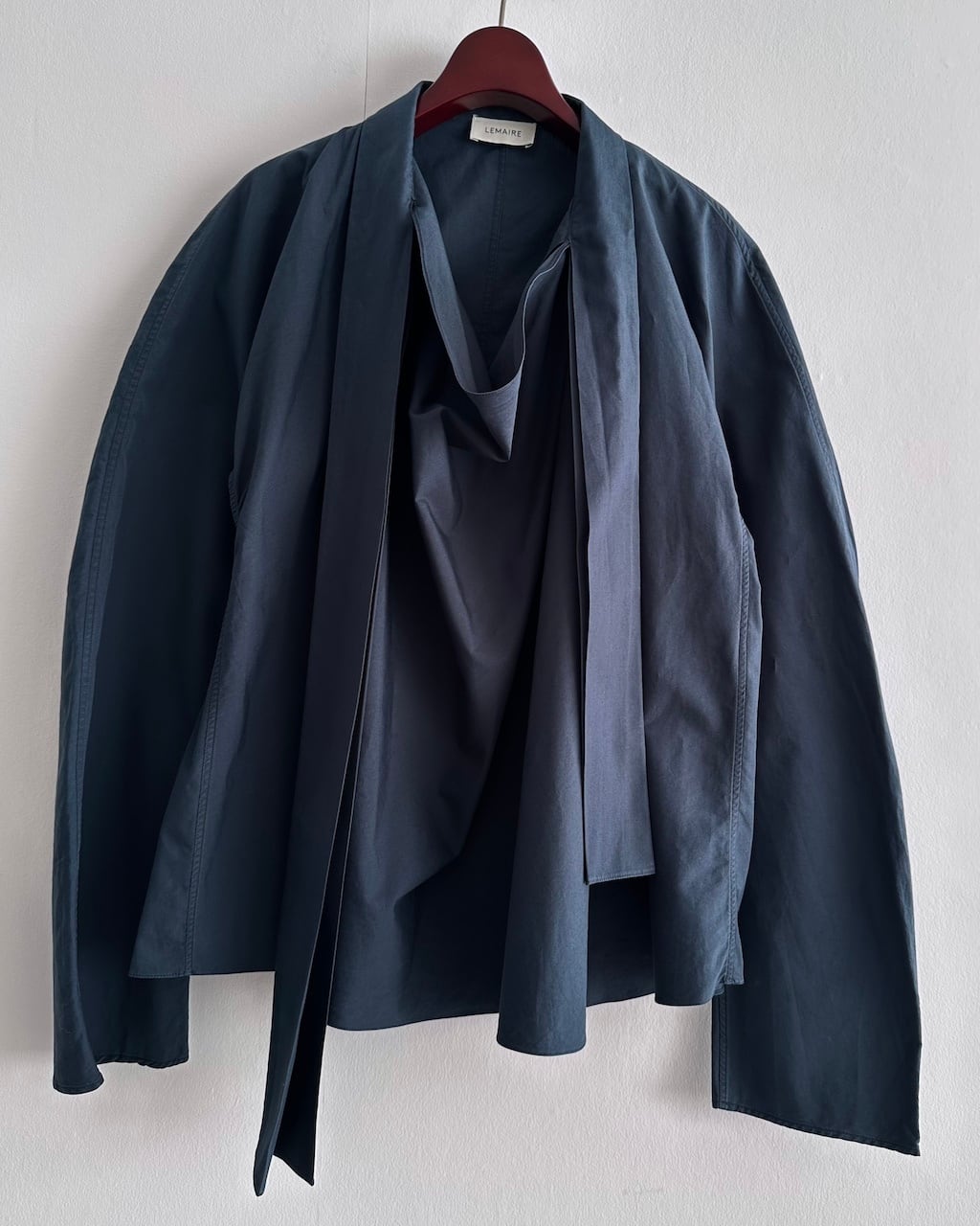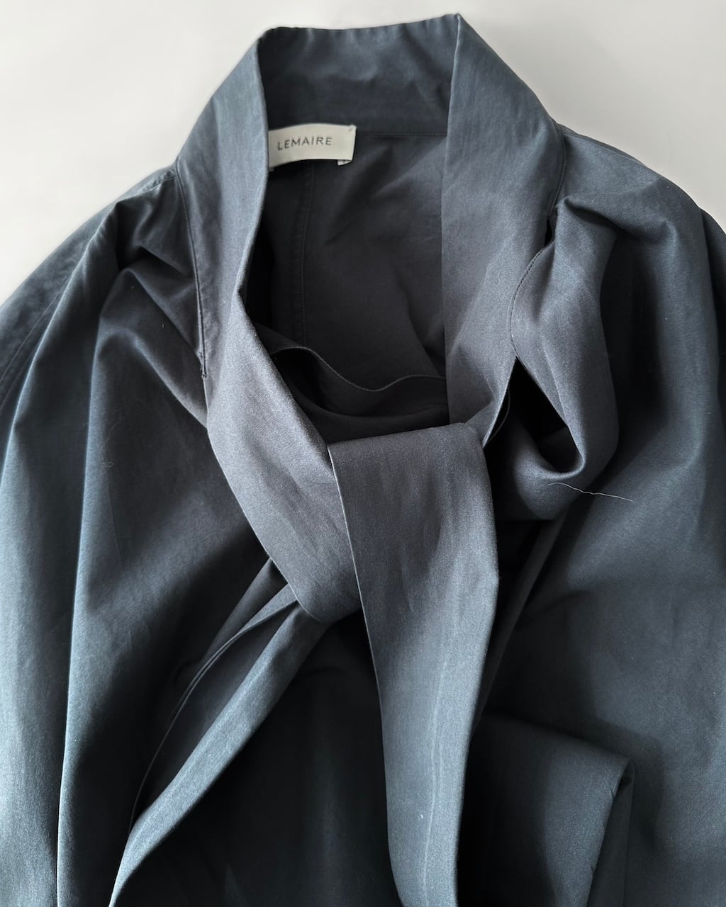 結び方や垂らし方によって印象が変わり、あえてラフに流すことでLEMAIRE特有の空気感がより際立ちます。