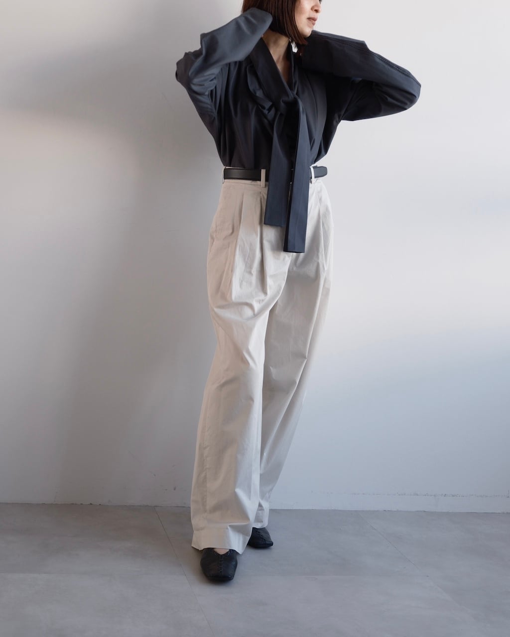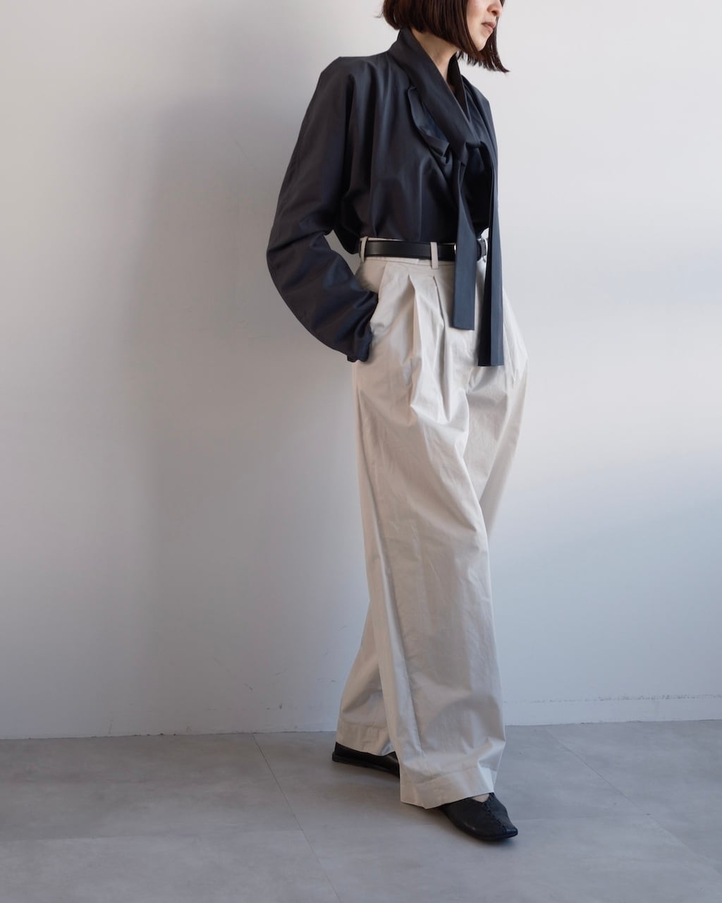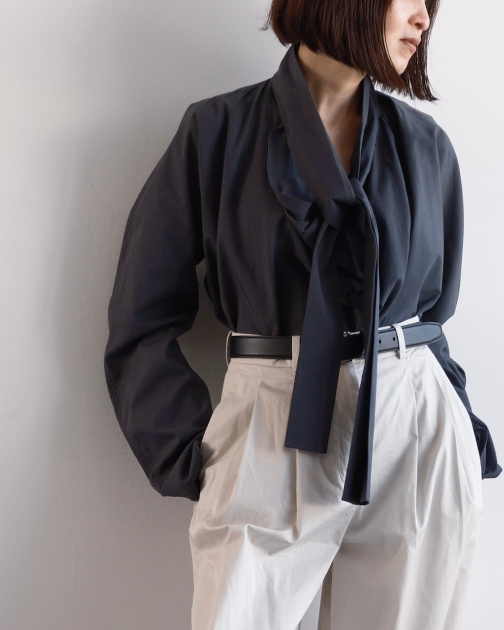 一枚でさらりと着るだけで、洗練されたスタイリングが完成するブラウスです。