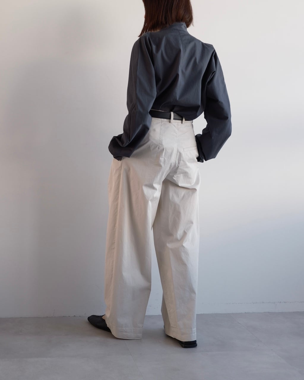肩に切り替えがなく、肩まわりから身頃にかけてゆとりを持たせた設計で、着用時にはふんわりとしたシルエットに。