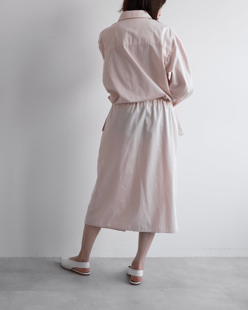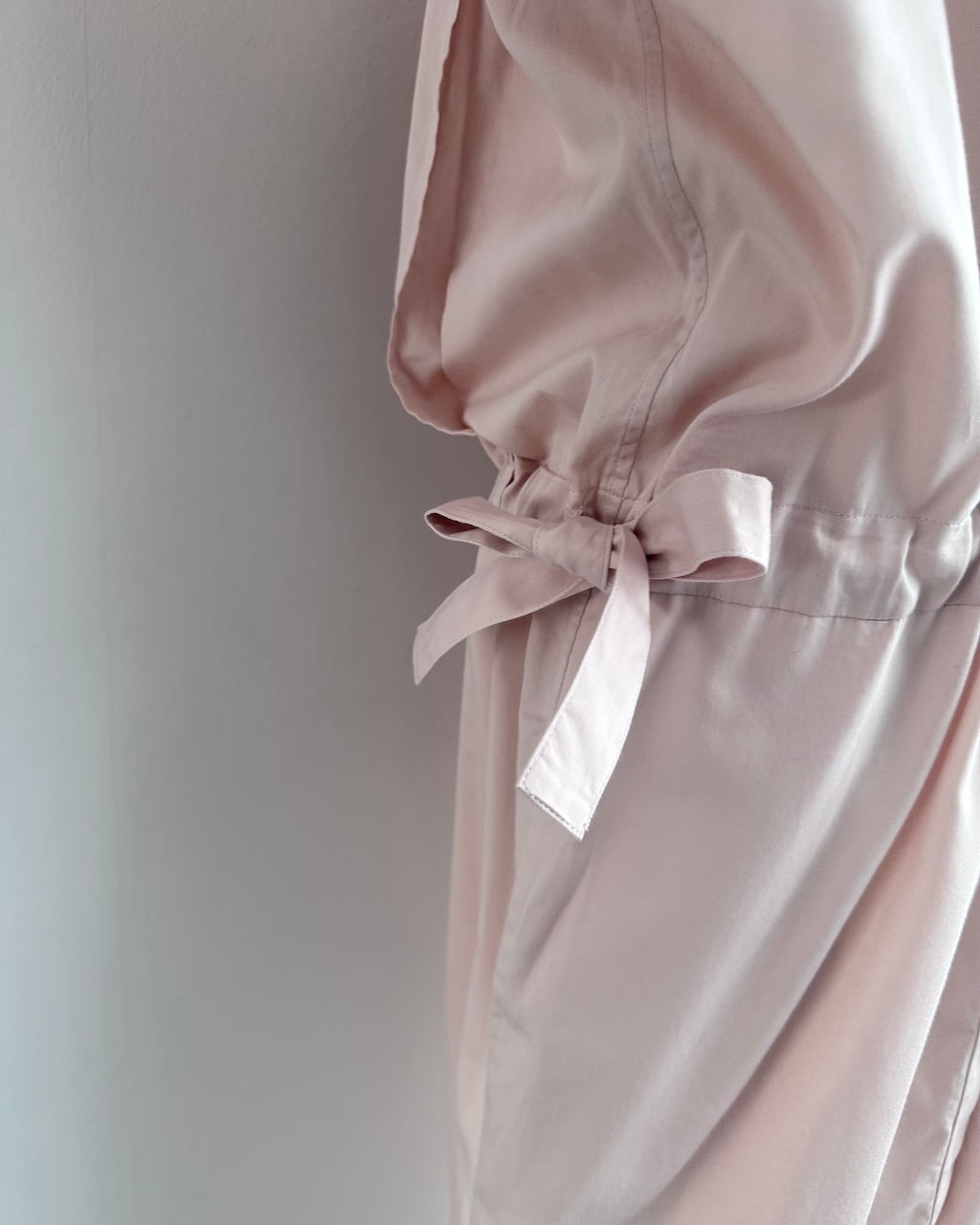 やや青みを含んだ桜のような淡いピンクが印象的で、なめらかなコットンの質感とともにやわらかな色合いに仕上がっています