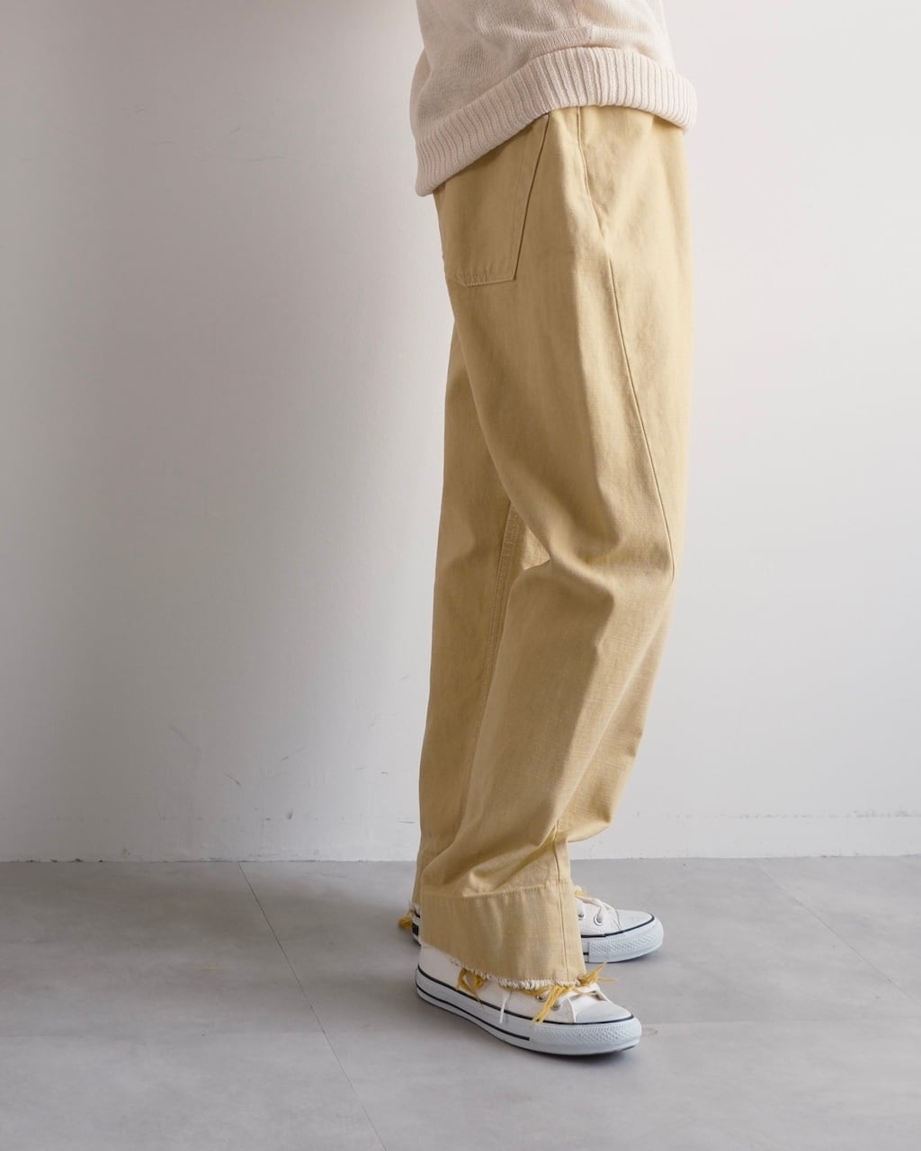 柔らかく染められたイエロートーンのコットンデニム。