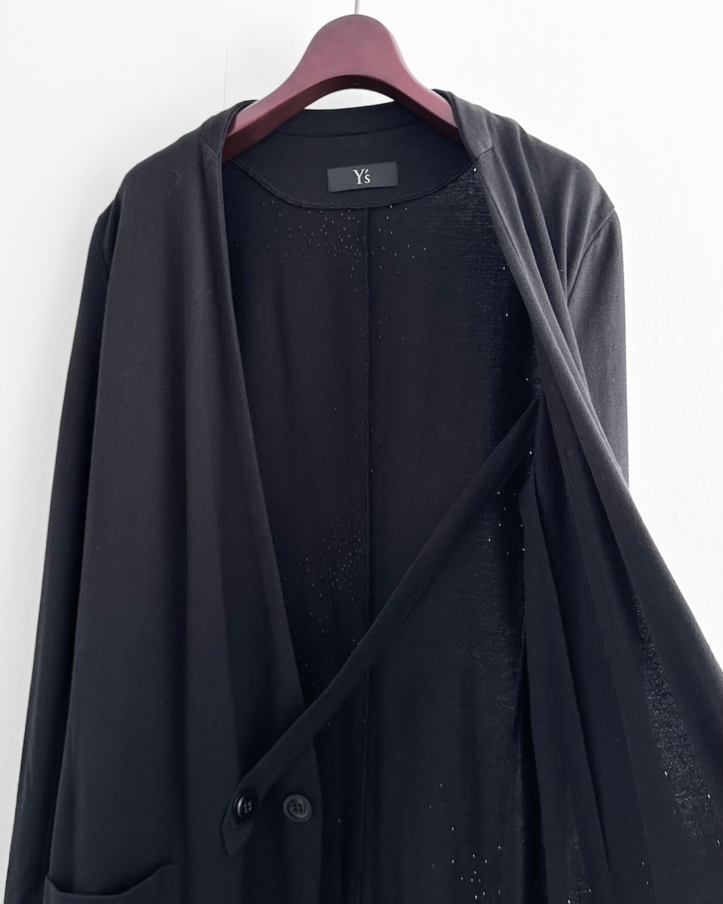 軽やかに羽織れるY'sのブラックロングカーディガン。