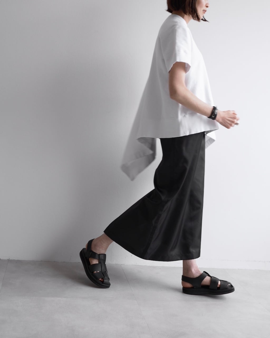 片側にのみ分量を持たせたアシンメトリーのシルエット。