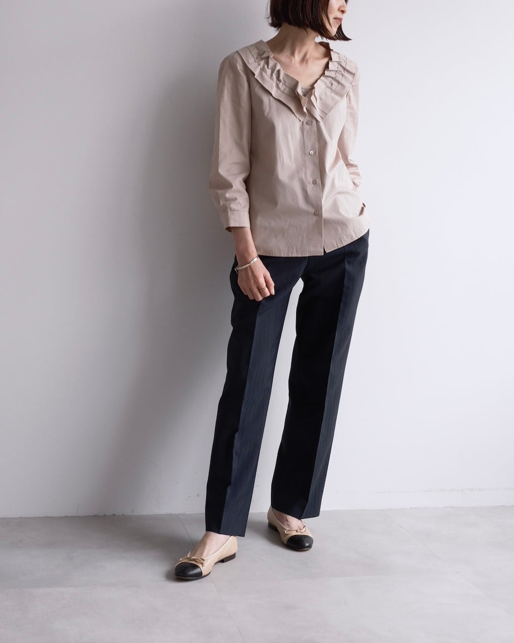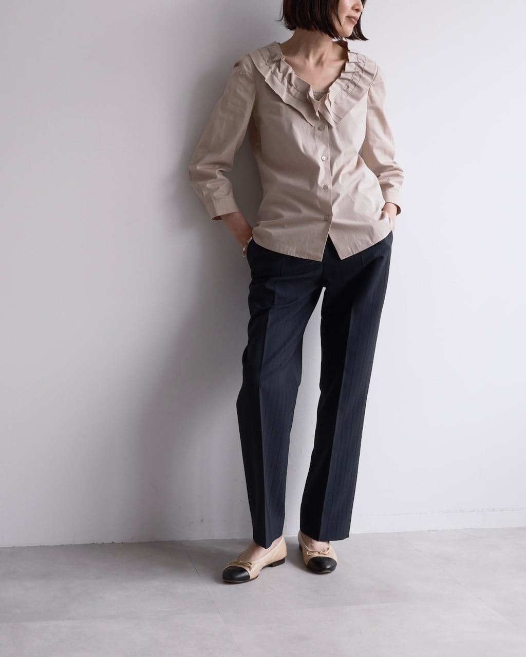 さらにその内側に走るステッチのラインが、フリルのをさりげなく引き締めています。
