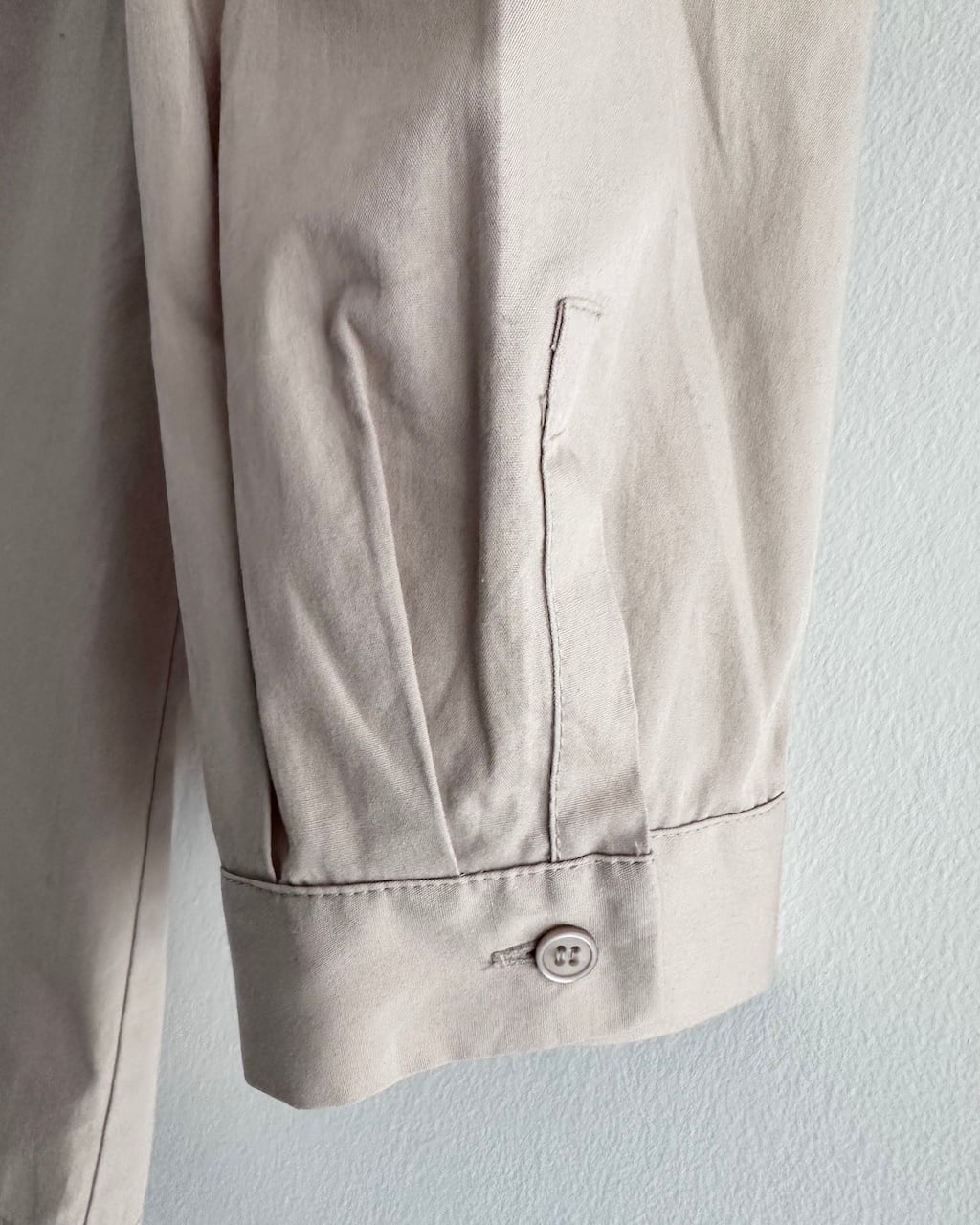 ややピンクがかったベージュのやわらかく上品なカラーが印象に残る一着です。